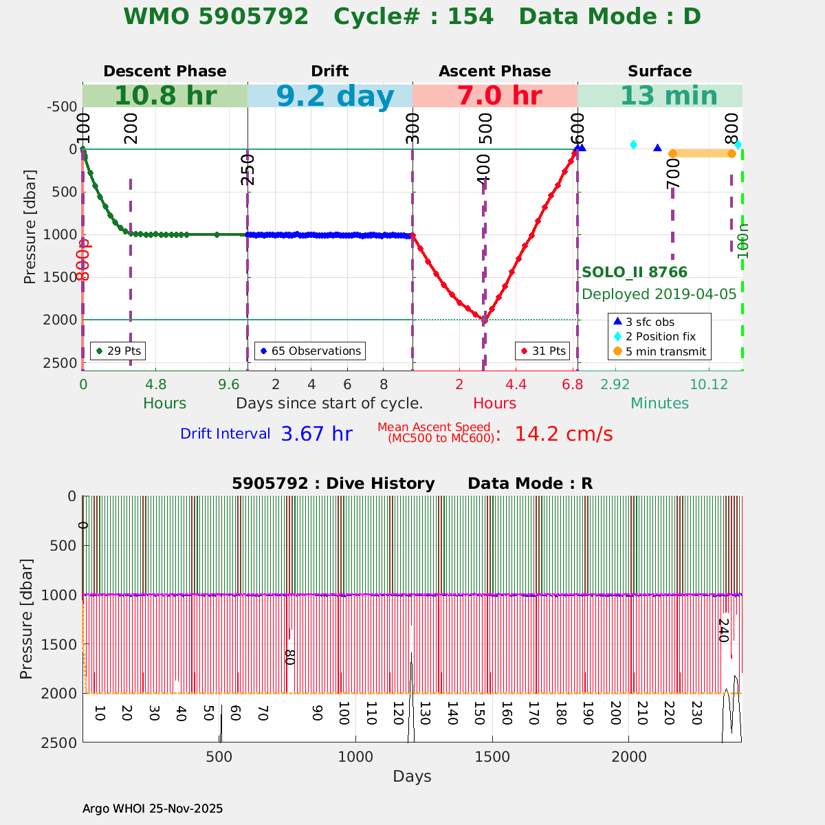 | WMO: #5905792 DAC: aoml PI: Dean ROEMMICH SOLO_II: #8766 DRUCK_2900PSIA: #10798182 SBE41CP: #10602 Altimeter Comparison (IFREMER) EuroArgo Link | ![]() |