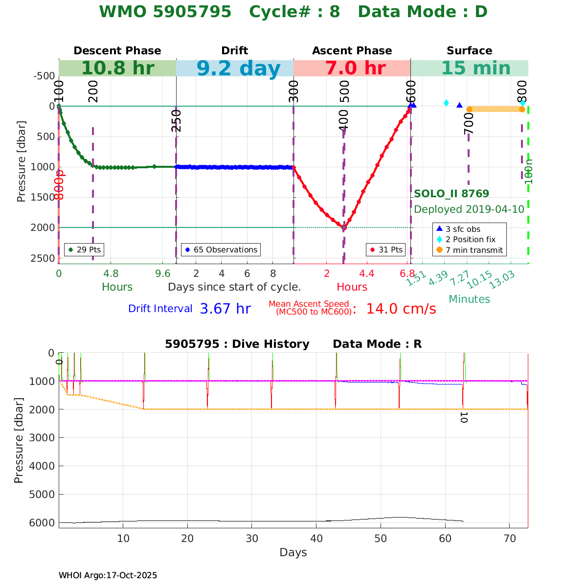| WMO: #3902180 DAC: aoml PI: Dean ROEMMICH SOLO_II: #8828 DRUCK_2900PSIA: #10985964 SBE41CP: #11290 Altimeter Comparison (IFREMER) EuroArgo Link | ![]() |