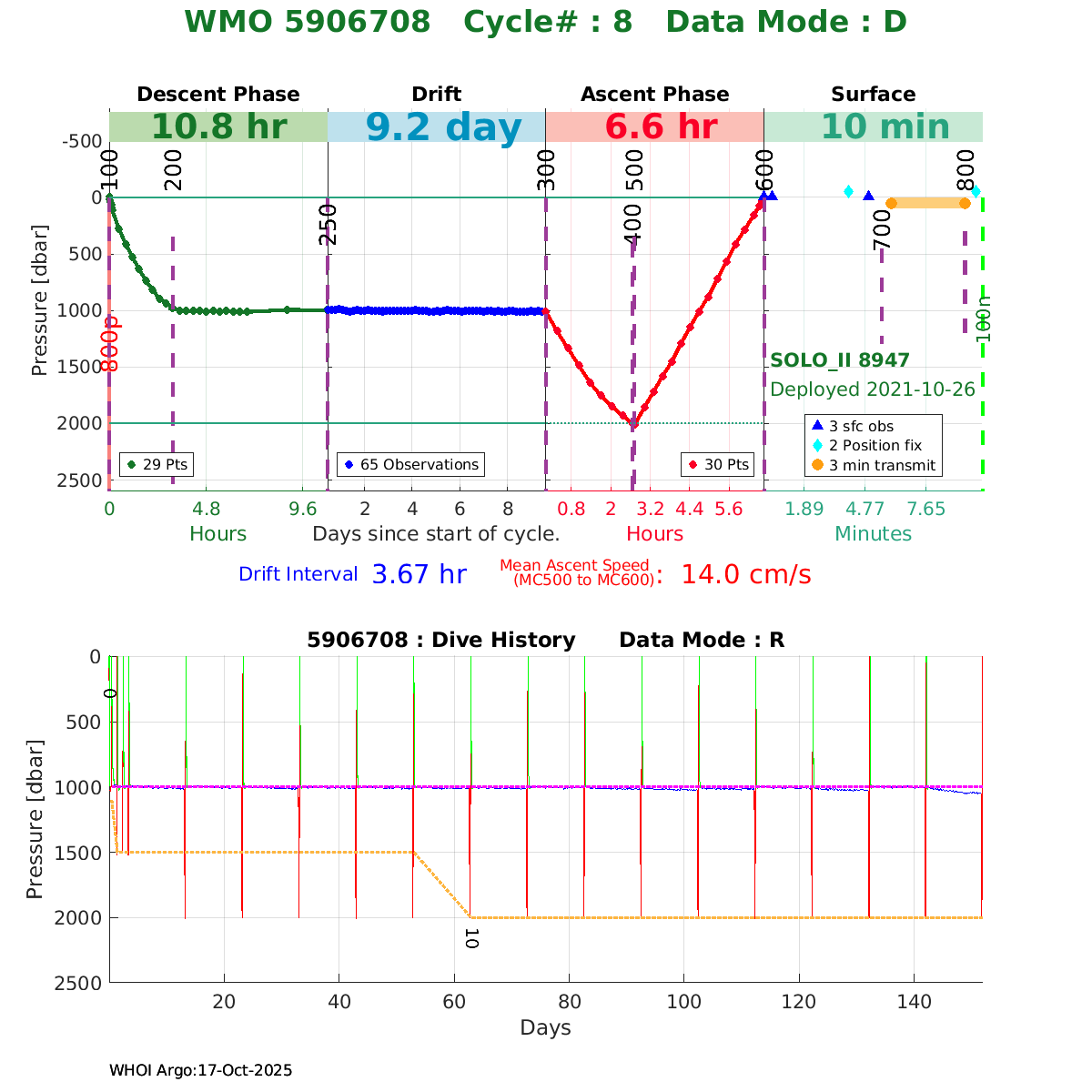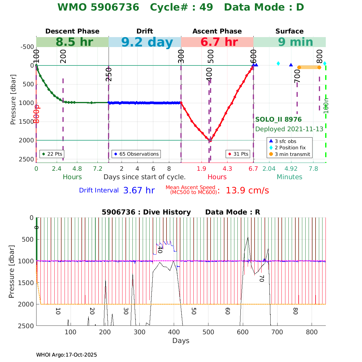 | WMO: #5906750 DAC: aoml PI: Nathalie ZILBERMAN, Dean ROEMMICH, Sarah PURKEY, John GILSON SOLO_D: #6089 KISTLER_10153PSIA: #5361132 SBE61: #5782 Altimeter Comparison (IFREMER) EuroArgo Link | ![]() |