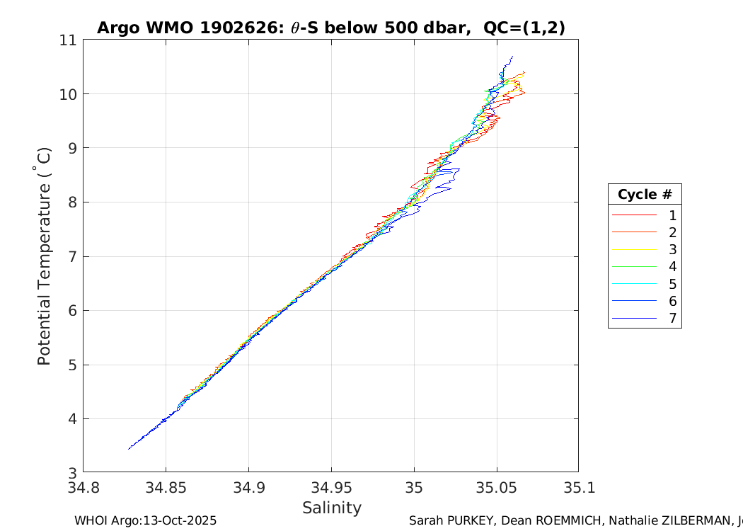 | WMO: #1902633 DAC: aoml PI: Sarah PURKEY, Dean ROEMMICH, Nathalie ZILBERMAN, John GILSON SOLO_II: #3348 DRUCK_2900PSIA: #12357233 SBE41CP: #19228 Altimeter Comparison (IFREMER) EuroArgo Link | ![]() |