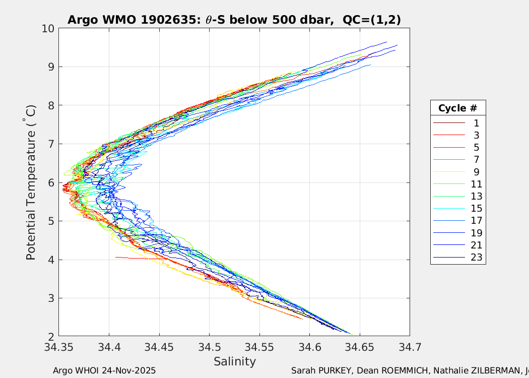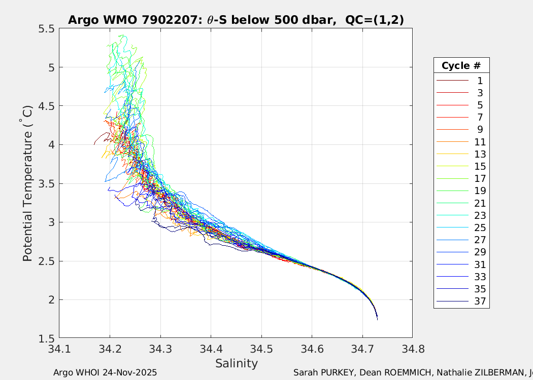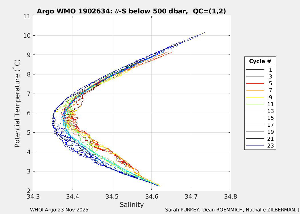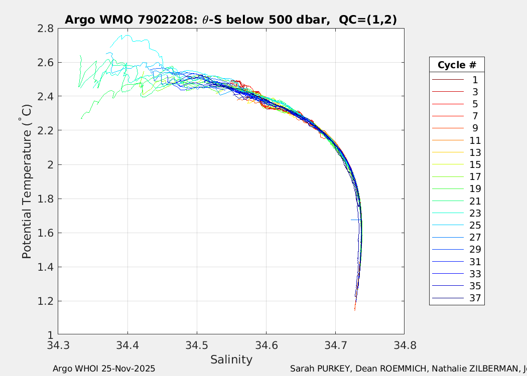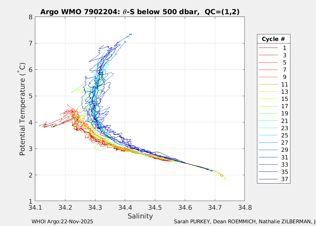 | WMO: #2903918 DAC: aoml PI: Sarah PURKEY SOLO BGC MRV: #4035 SBE41CP: #20005 SBE83_OPTODE: #186 ECO_FLBBFL: #8898 SEAFET: #12502 SUNA_V2: #2388 OCR504_ICSW: #2564 Altimeter Comparison (IFREMER) EuroArgo Link | ![]() |
