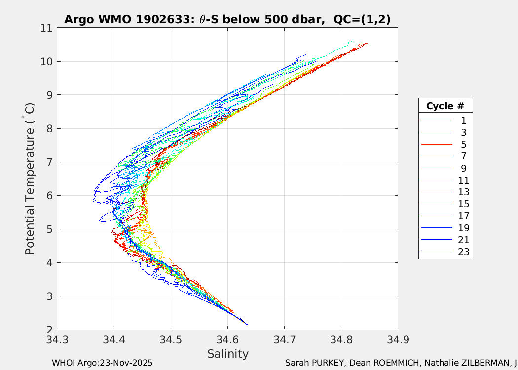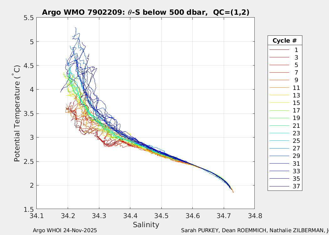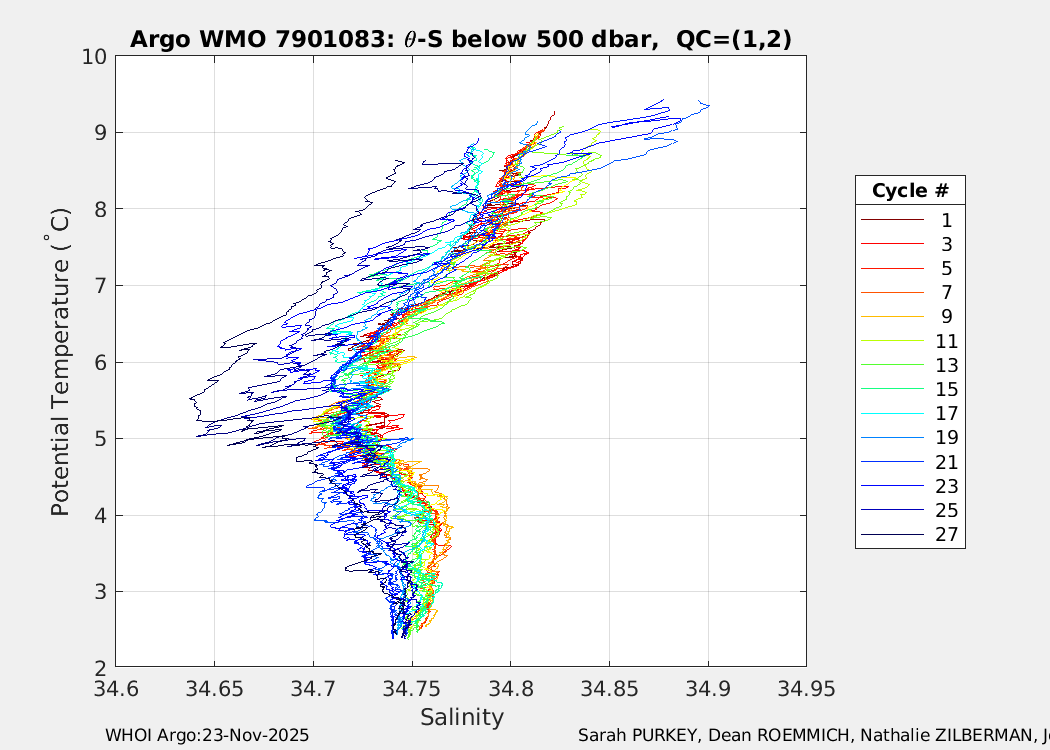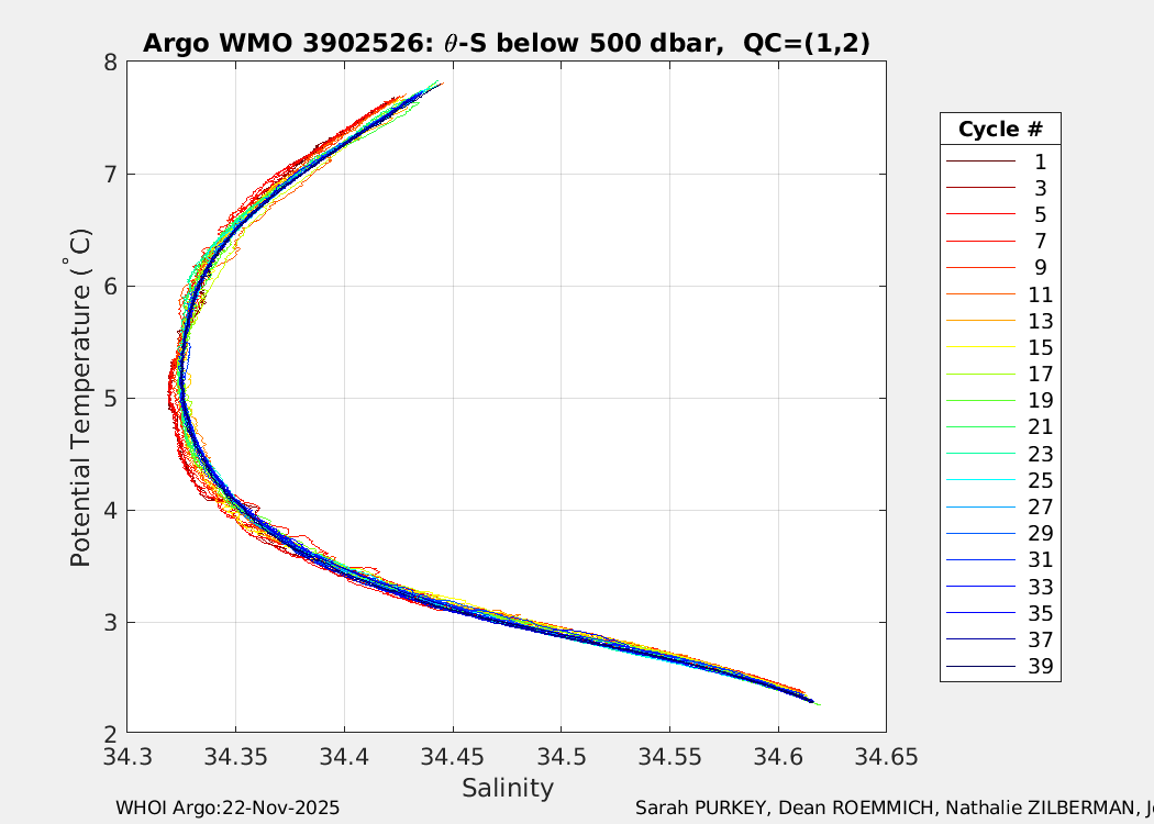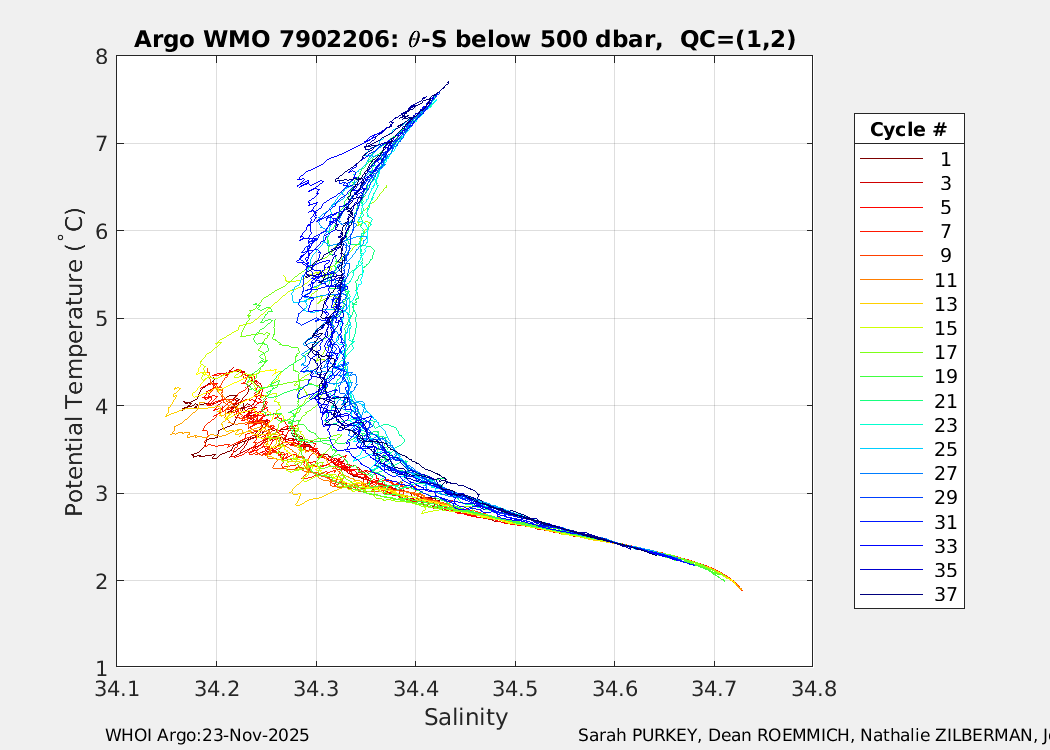 | WMO: #2903918 DAC: aoml PI: Sarah PURKEY SOLO BGC MRV: #4035 SBE41CP: #20005 SBE83_OPTODE: #186 ECO_FLBBFL: #8898 SEAFET: #12502 SUNA_V2: #2388 OCR504_ICSW: #2564 Altimeter Comparison (IFREMER) EuroArgo Link | ![]() |