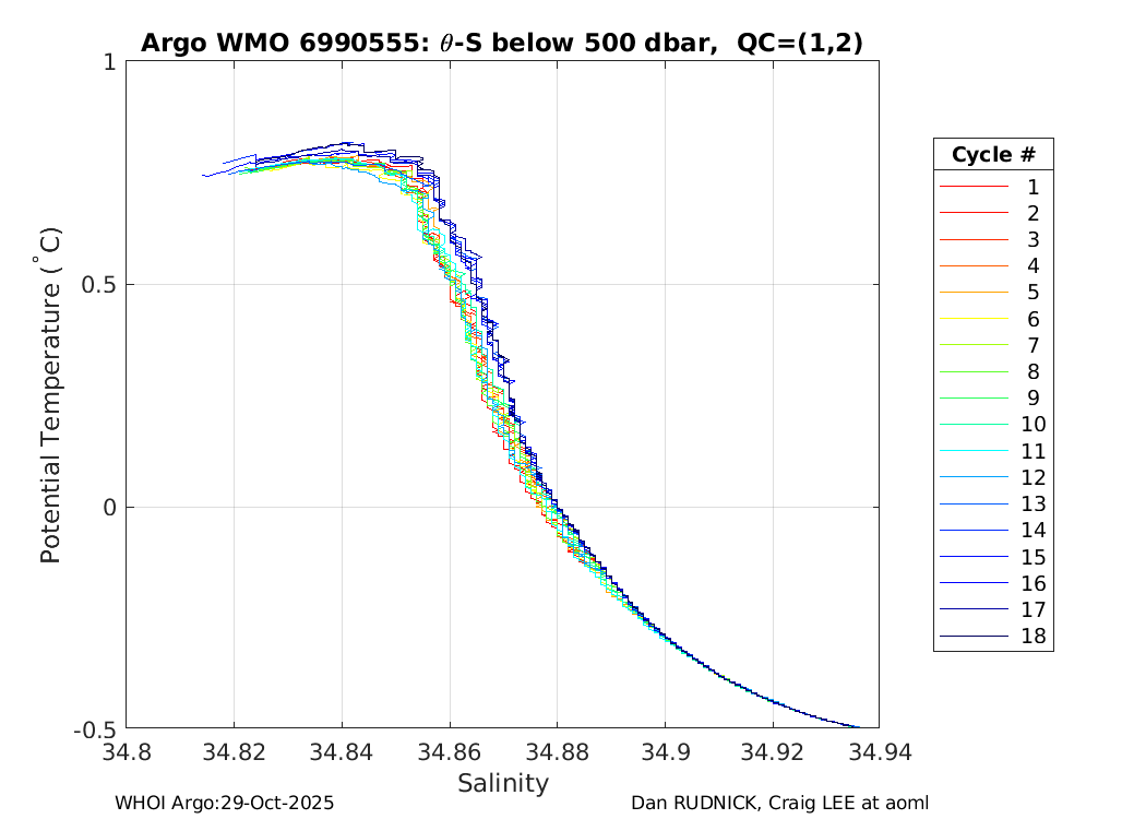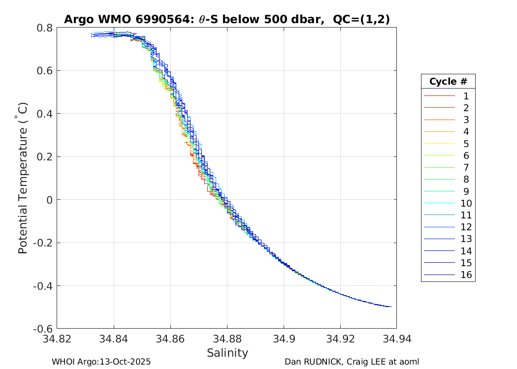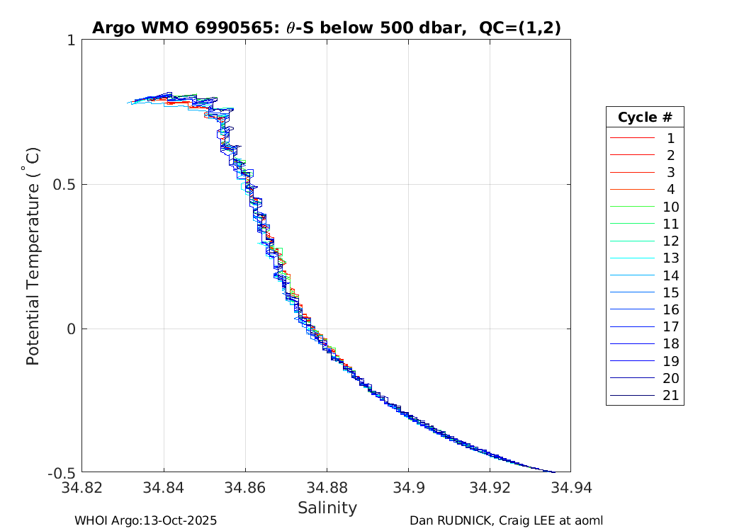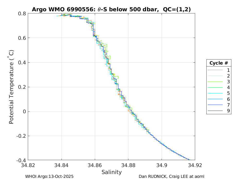 | WMO: #6990565 DAC: aoml PI: Dan RUDNICK, Craig LEE SOLO_II: #3412 DRUCK_2900PSIA: #13149505 SBE41CP: #21338 Altimeter Comparison (IFREMER) EuroArgo Link | ![]() |