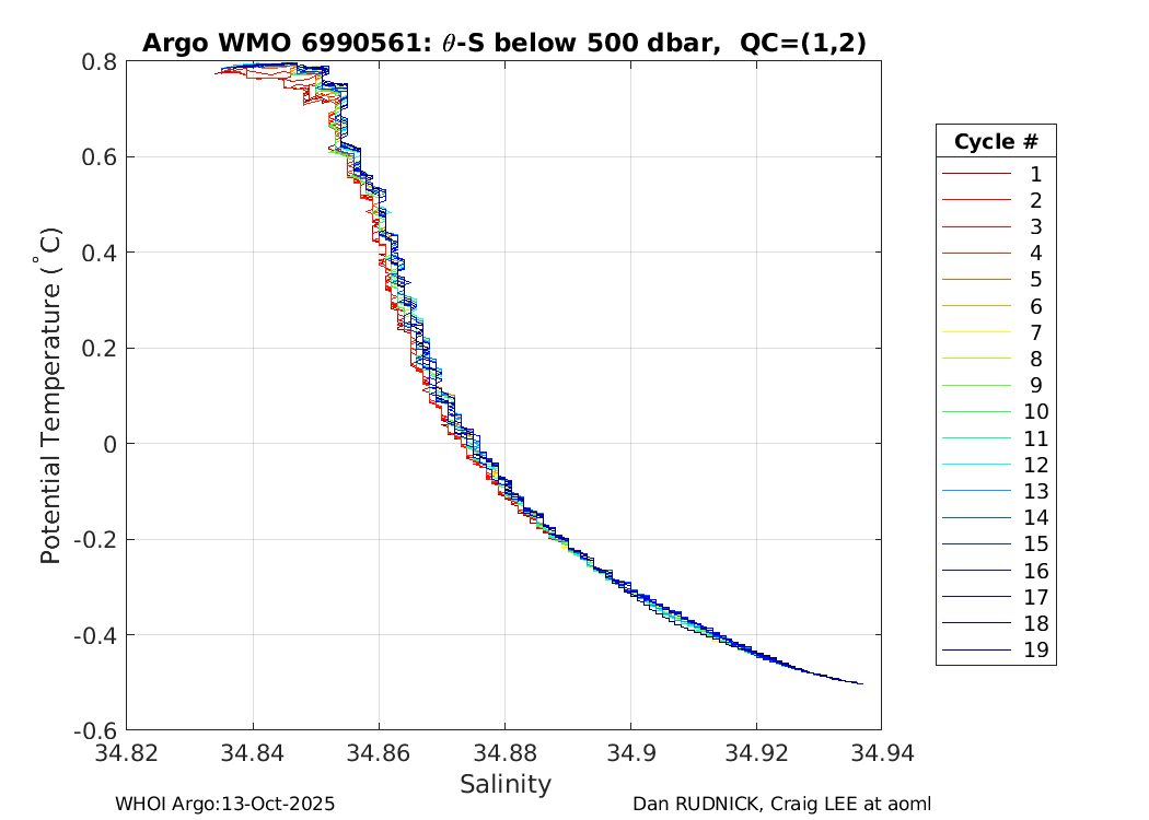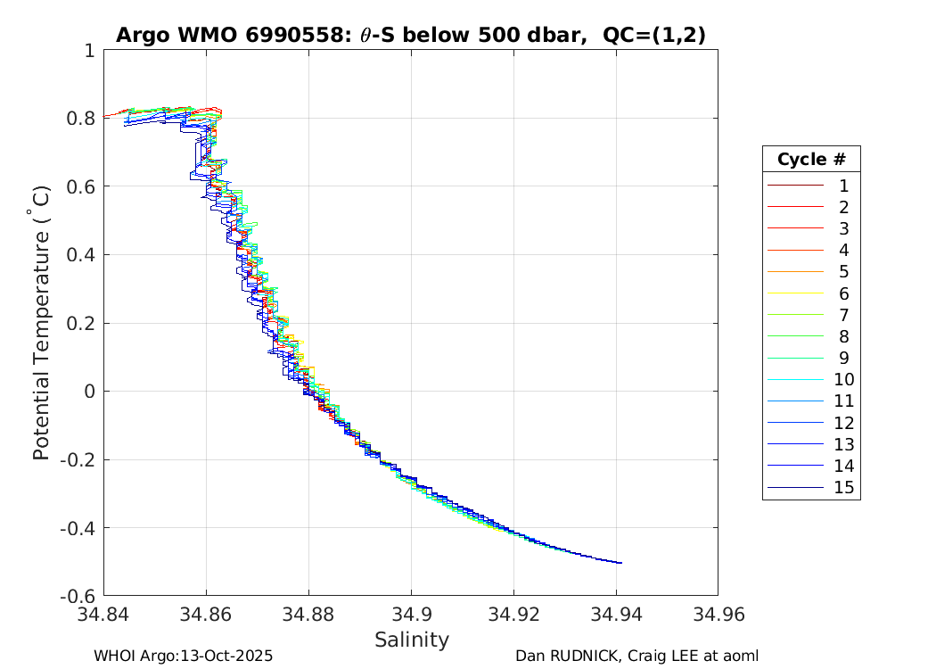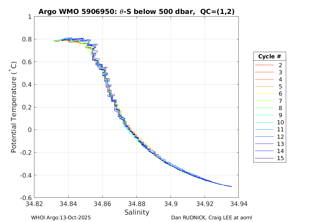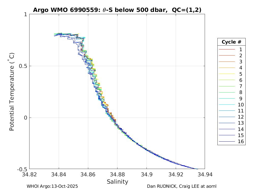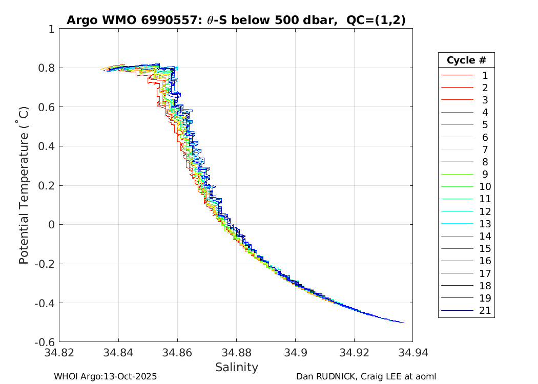 | WMO: #6990565 DAC: aoml PI: Dan RUDNICK, Craig LEE SOLO_II: #3412 DRUCK_2900PSIA: #13149505 SBE41CP: #21338 Altimeter Comparison (IFREMER) EuroArgo Link | ![]() |
