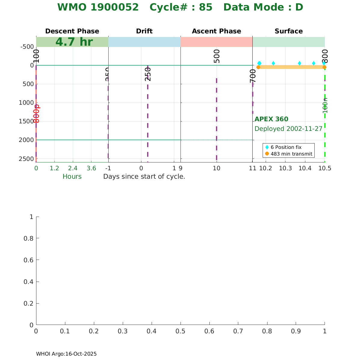 | WMO: #5900231 DAC: aoml PI: STEPHEN RISER APEX: #487 SBE41: #0527 SBE41: # SBE41: #Unknown Altimeter Comparison (IFREMER) EuroArgo Link | ![]() |