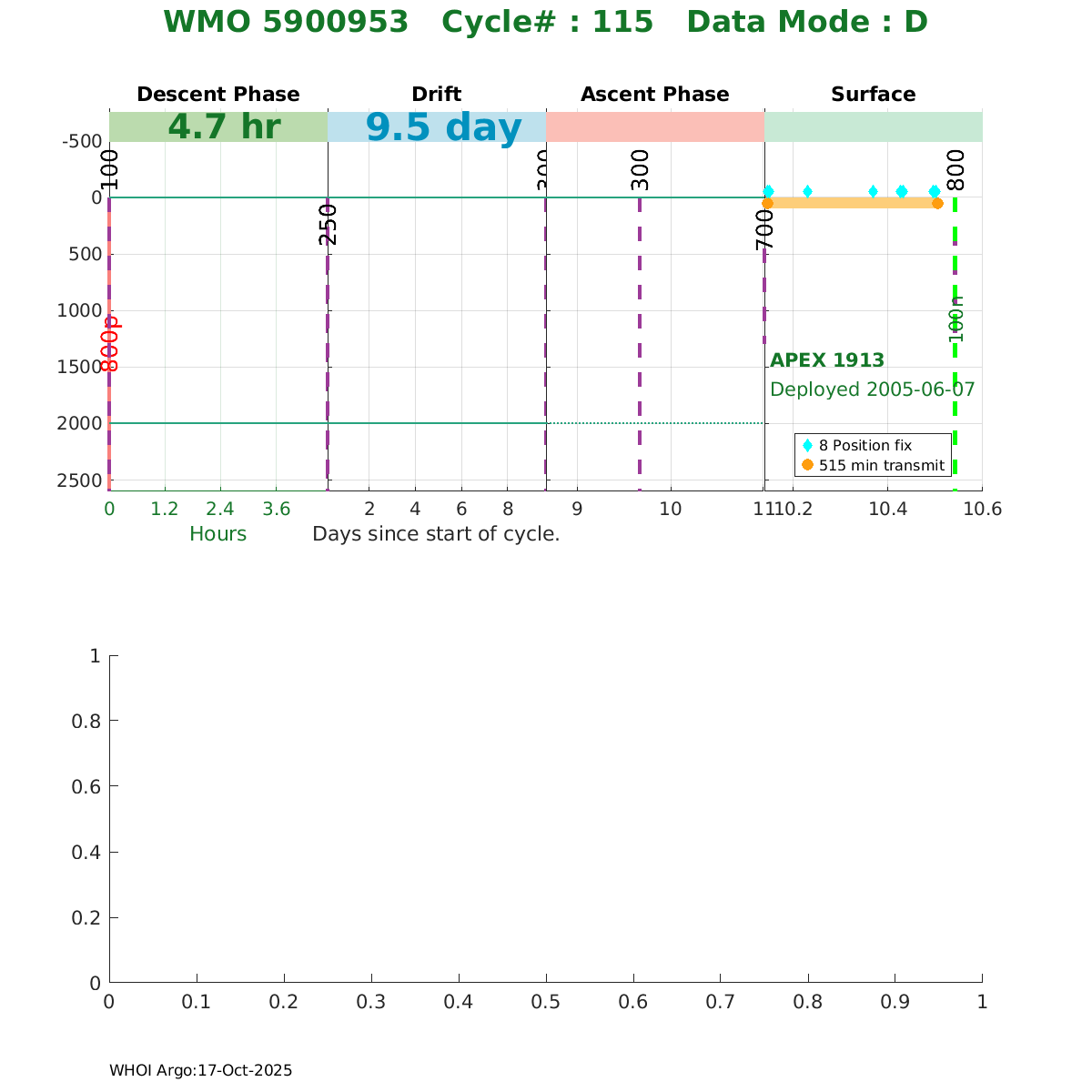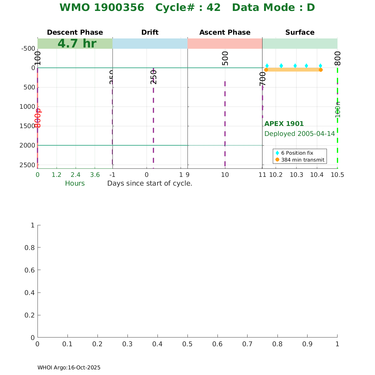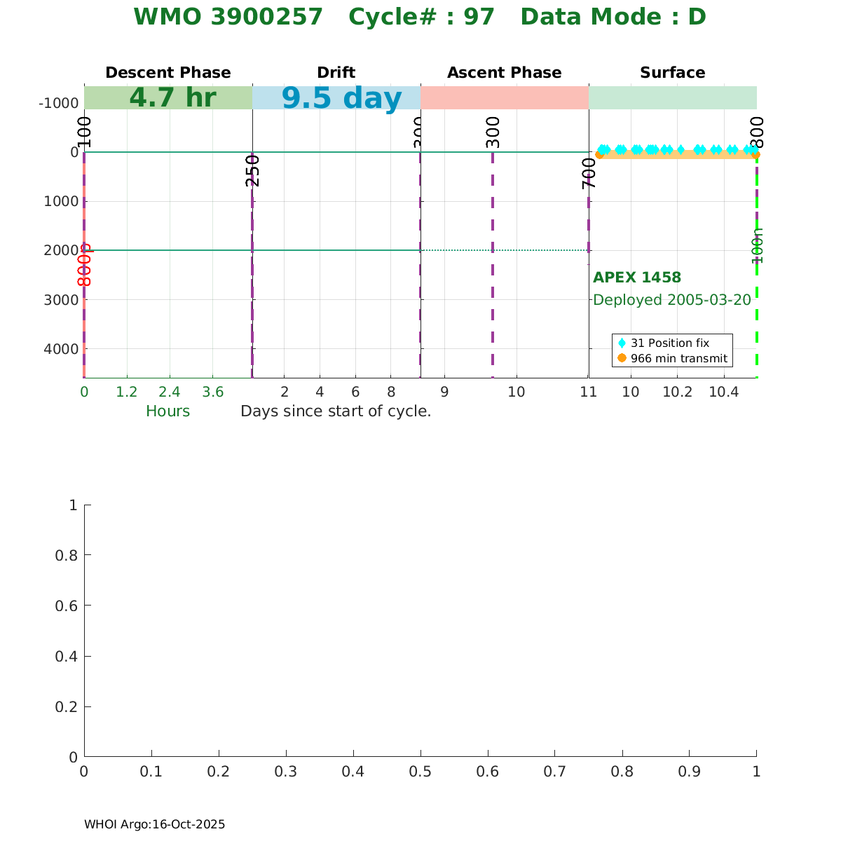 | WMO: #3900341 DAC: aoml PI: STEPHEN RISER APEX: #2047 SBE41: #2033 DRUCK_2900PSIA: #7132 Altimeter Comparison (IFREMER) EuroArgo Link | ![]() |