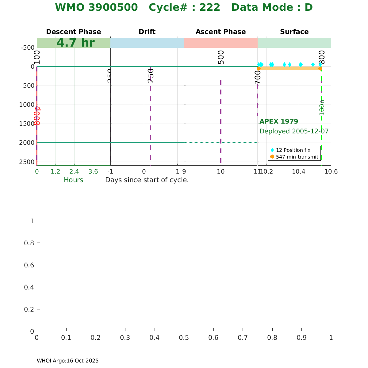 | WMO: #3900334 DAC: aoml PI: STEPHEN RISER APEX: #2128 SBE41: #2272 DRUCK_2900PSIA: #7775 SBE43I: #0138 Altimeter Comparison (IFREMER) EuroArgo Link | ![]() |
