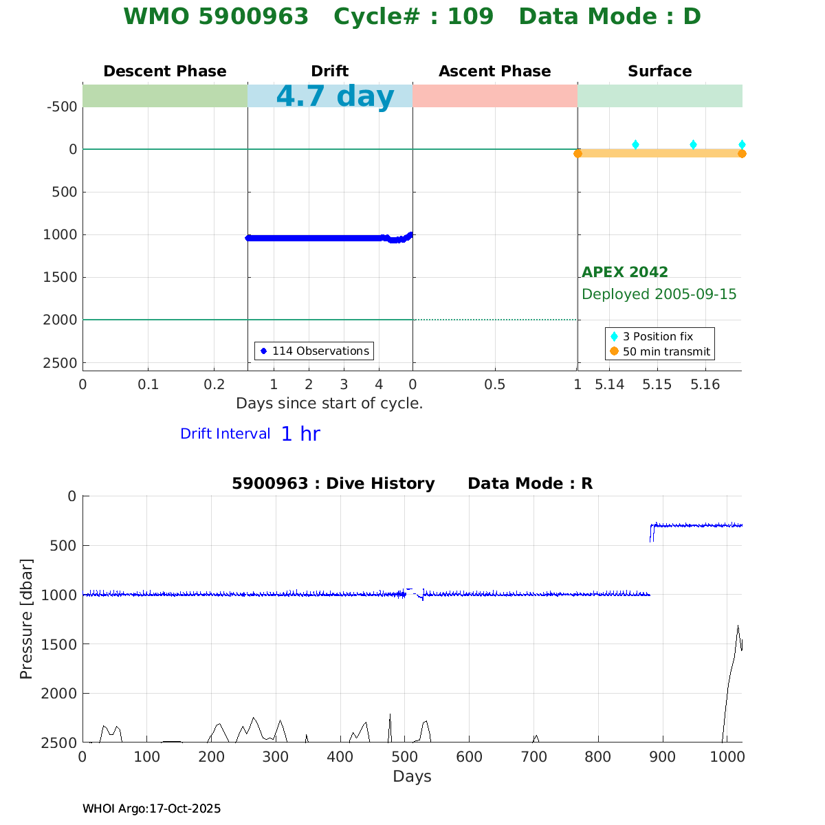 | WMO: #5901044 DAC: aoml PI: STEPHEN RISER APEX: #2131 SBE41: #2283 DRUCK_2900PSIA: #7880 SBE43I: #0143 Altimeter Comparison (IFREMER) EuroArgo Link | ![]() |