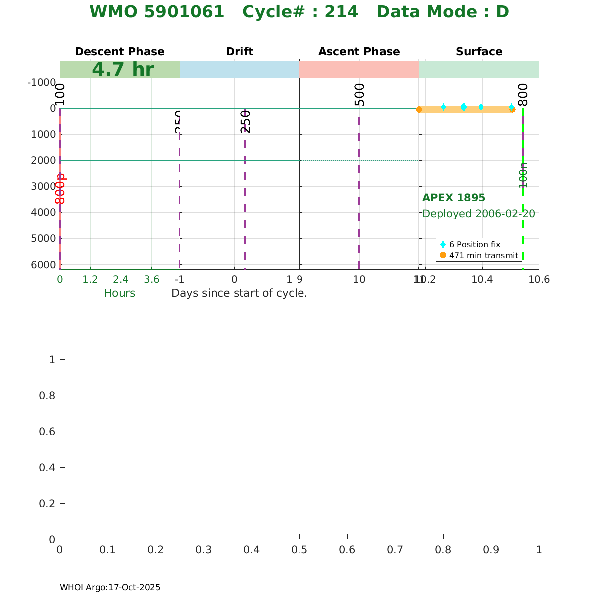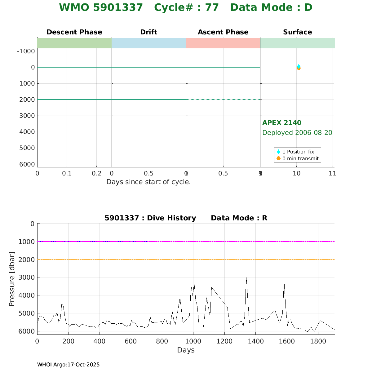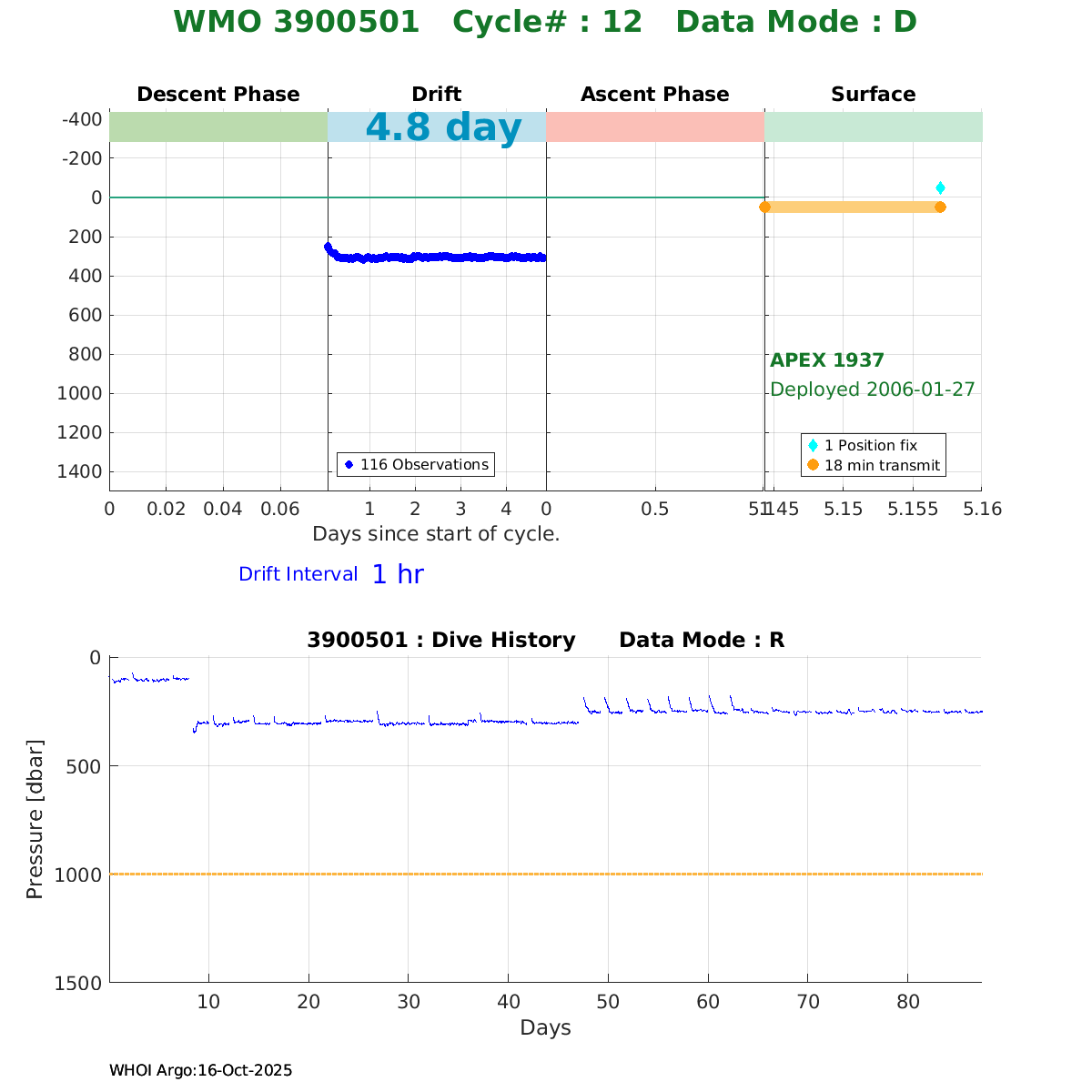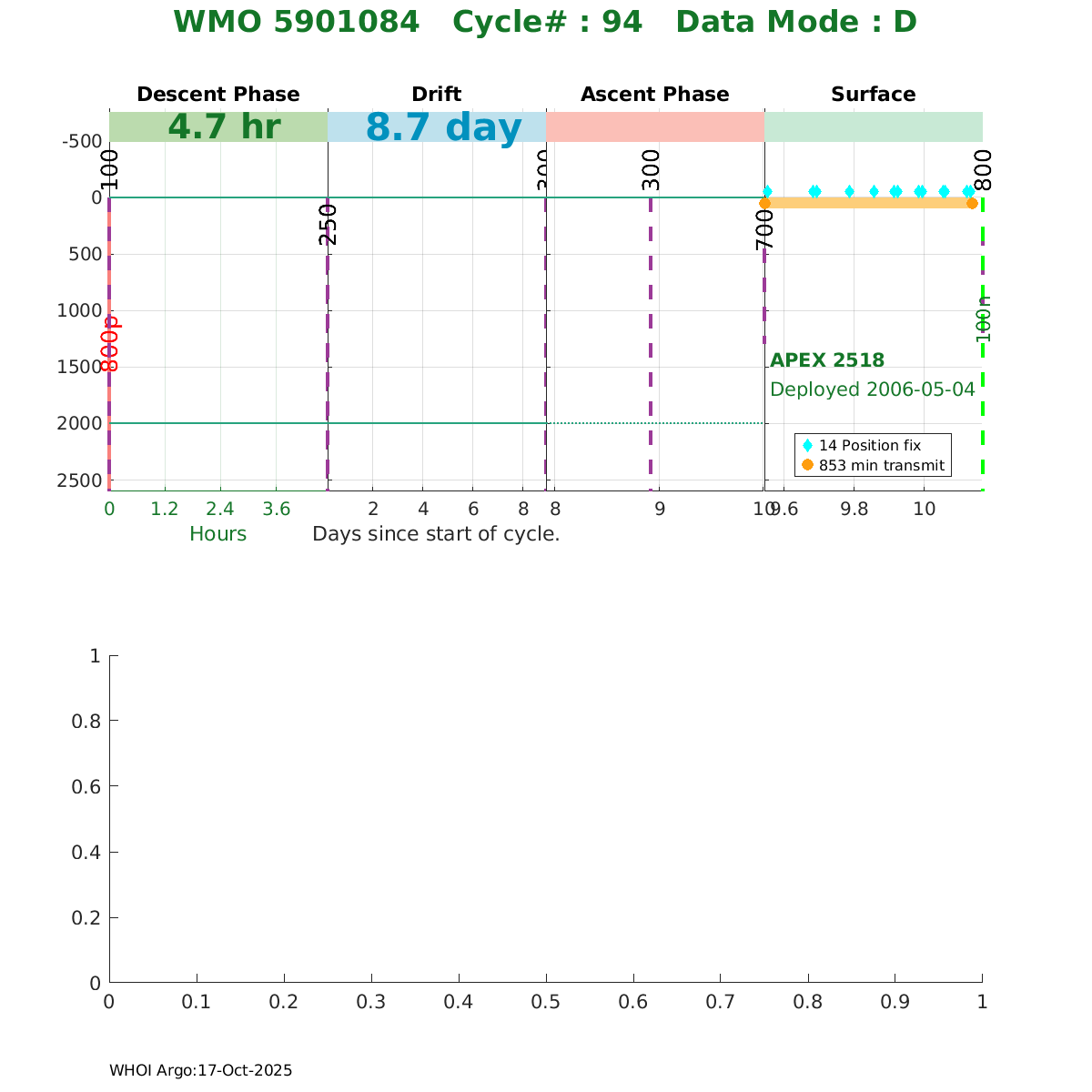 | WMO: #5901344 DAC: aoml PI: STEPHEN RISER APEX: #2872 SBE41: #2859 DRUCK_2900PSIA: #10068 Altimeter Comparison (IFREMER) EuroArgo Link | n/a | n/a | ![]() |