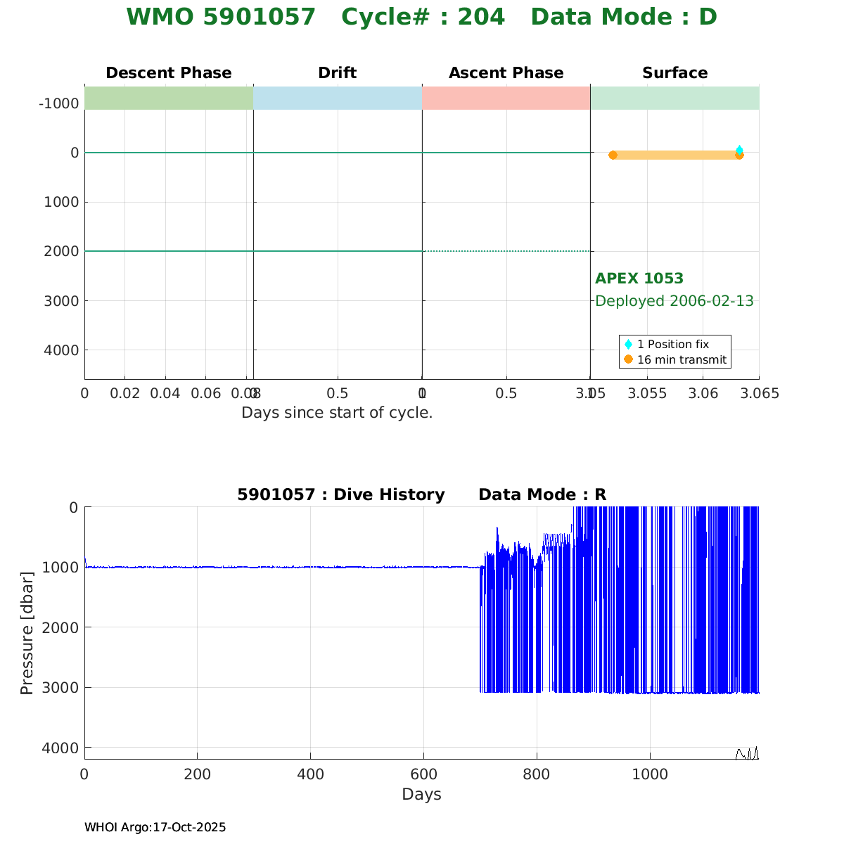 | WMO: #5901057 DAC: aoml PI: STEPHEN RISER APEX: #1053 SBE41CP: #0704 DRUCK_2900PSIA: #5148 Altimeter Comparison (IFREMER) EuroArgo Link | ![]() |