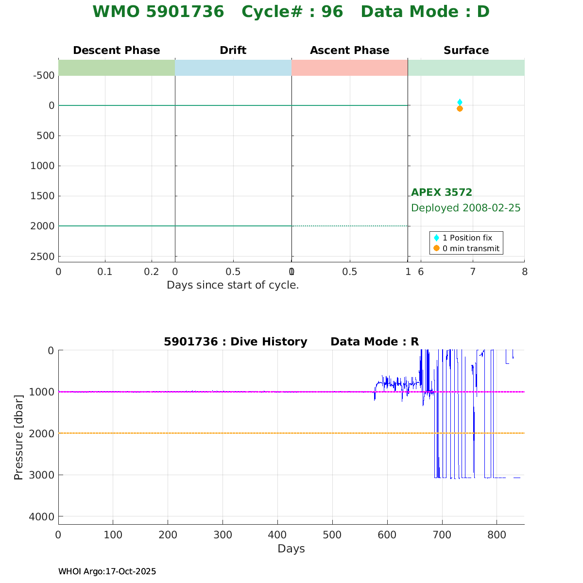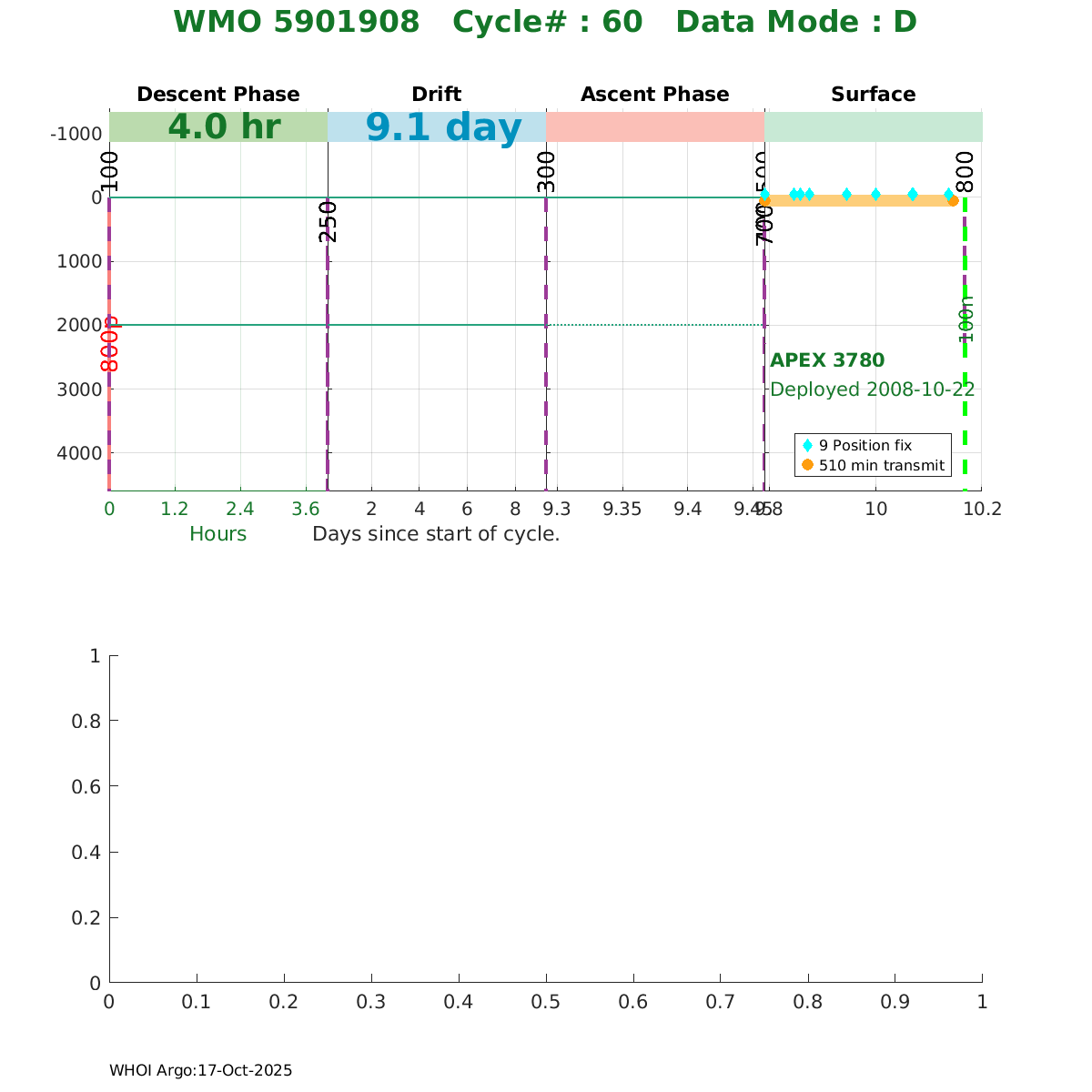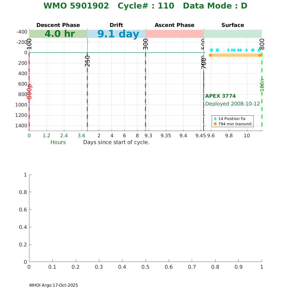 | WMO: #5902074 DAC: aoml PI: STEPHEN RISER APEX: #3828 SBE41: #3862 DRUCK_2900PSIA: #2606415 Altimeter Comparison (IFREMER) EuroArgo Link | ![]() |