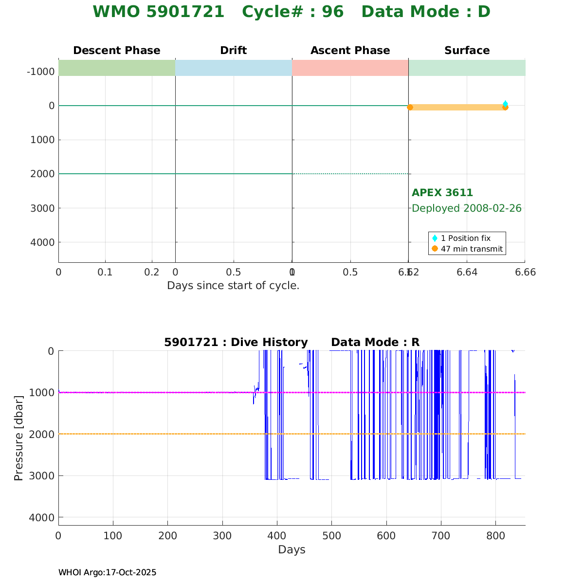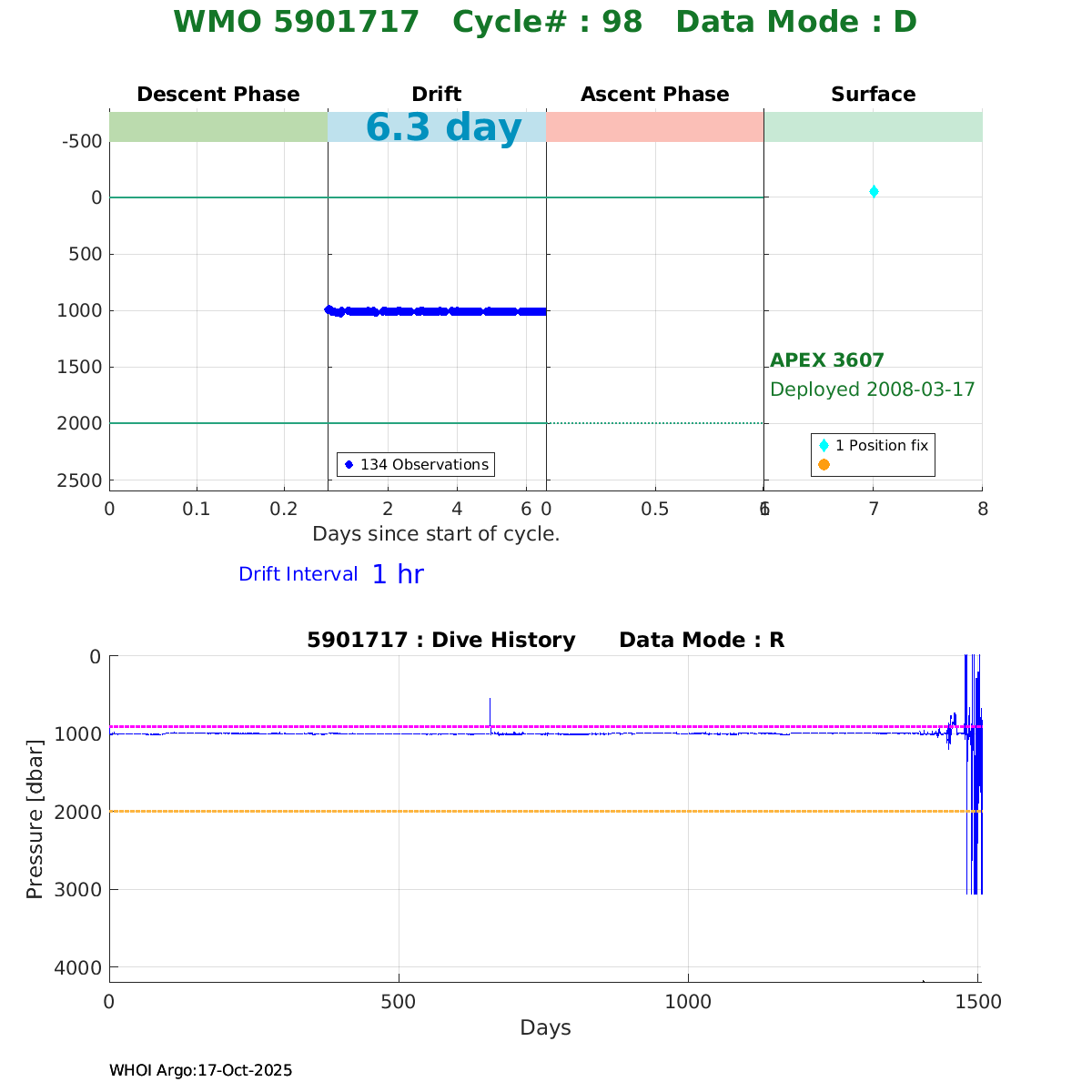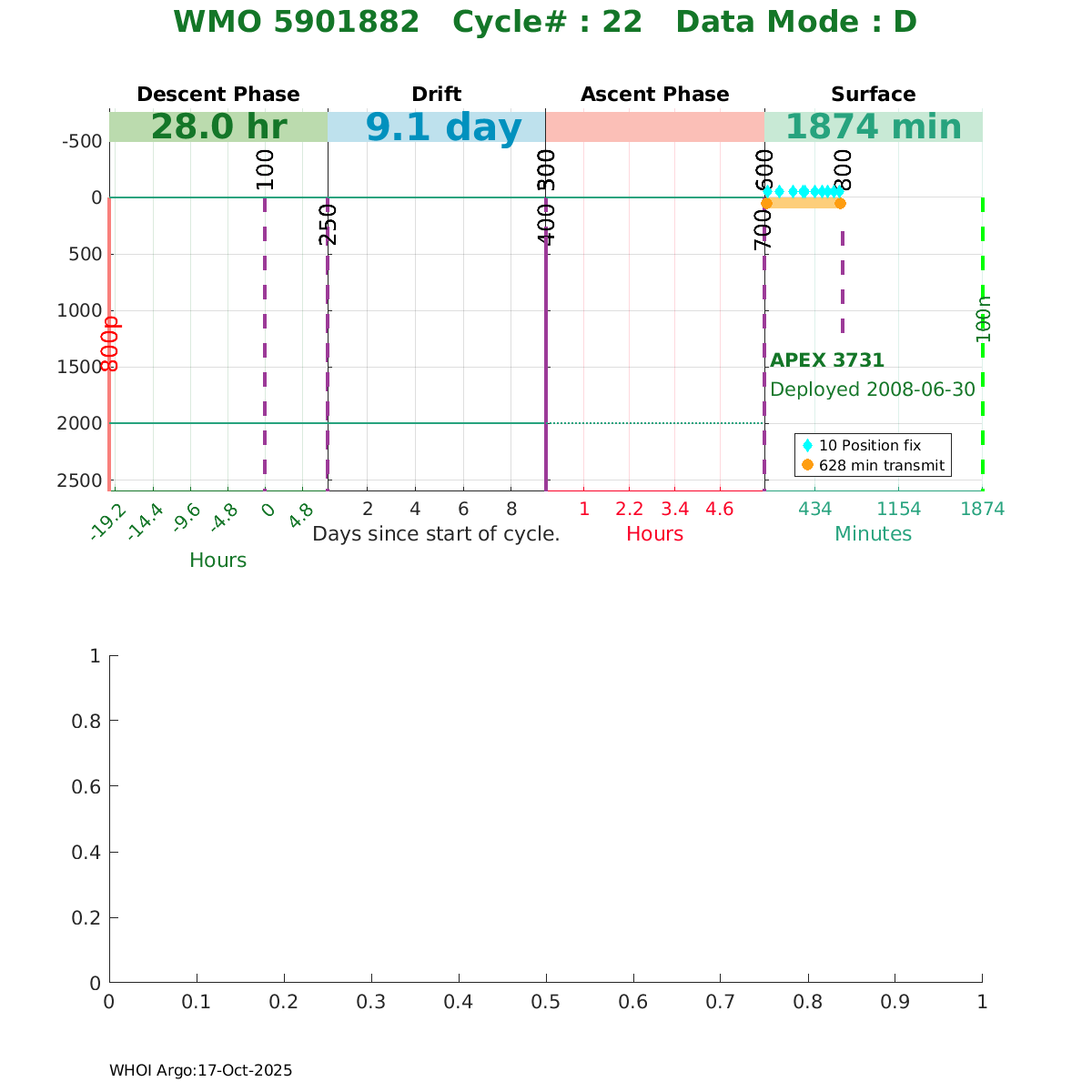| WMO: #5902074 DAC: aoml PI: STEPHEN RISER APEX: #3828 SBE41: #3862 DRUCK_2900PSIA: #2606415 Altimeter Comparison (IFREMER) EuroArgo Link | ![]() |
