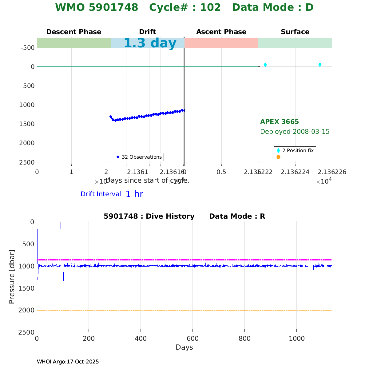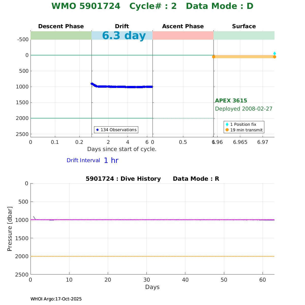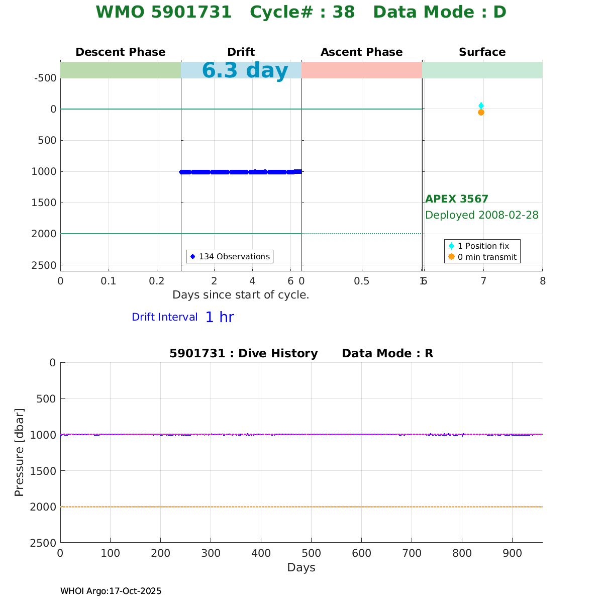 | WMO: #5901734 DAC: aoml PI: STEPHEN RISER APEX: #3570 SBE41CP: #2152 DRUCK_2900PSIA: #2477263 SBE43F_IDO: #0246 Altimeter Comparison (IFREMER) EuroArgo Link | ![]() |