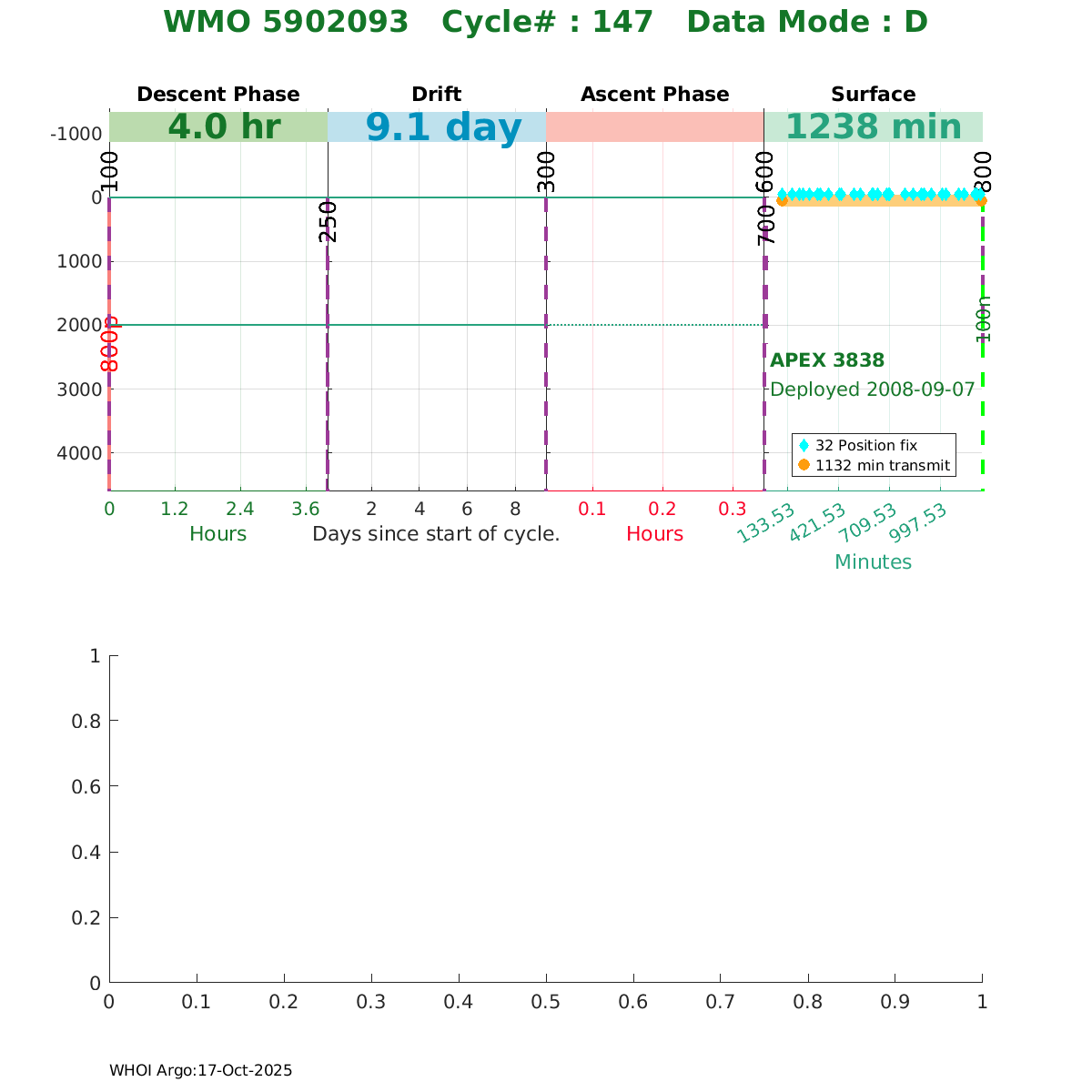 | WMO: #5902103 DAC: aoml PI: STEPHEN RISER APEX: #3279 SBE41CP: #1497 DRUCK_2900PSIA: #9686 Altimeter Comparison (IFREMER) EuroArgo Link | n/a | n/a | ![]() |