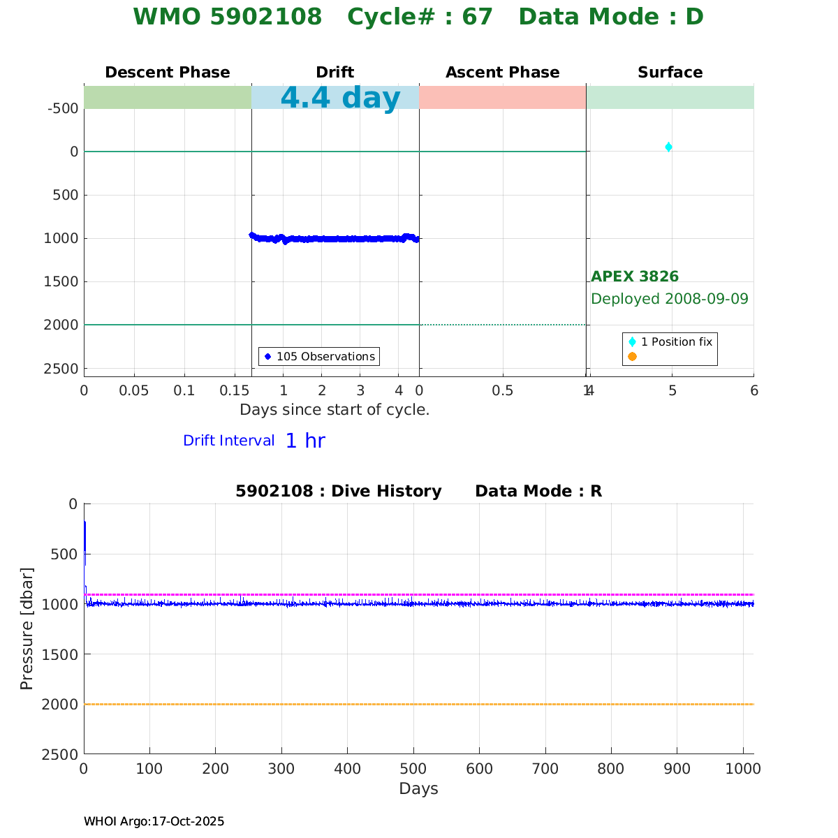 | WMO: #5902077 DAC: aoml PI: STEPHEN RISER APEX: #3943 SBE41: #3932 DRUCK_2900PSIA: #2606471 Altimeter Comparison (IFREMER) EuroArgo Link | ![]() |