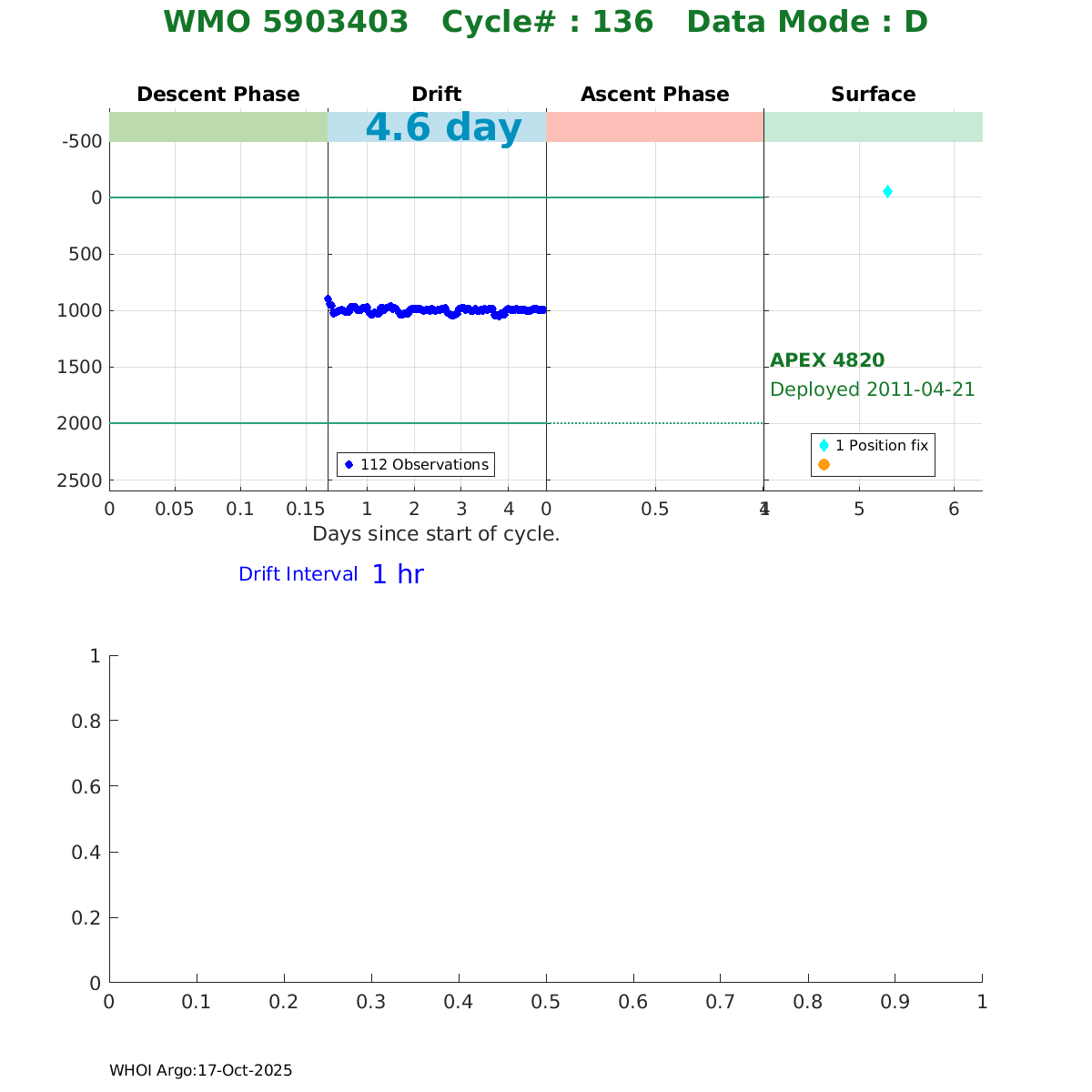 | WMO: #5903567 DAC: aoml PI: STEPHEN RISER APEX: #5447 SBE41: #5403 DRUCK_2900PSIA: #3207531 Altimeter Comparison (IFREMER) EuroArgo Link | ![]() |