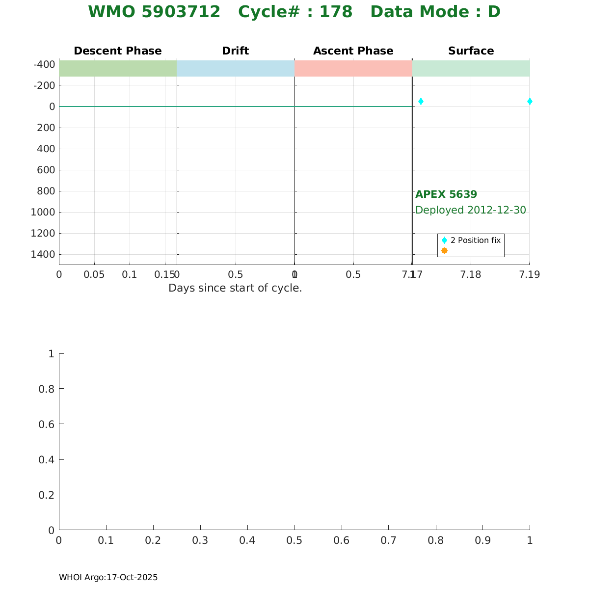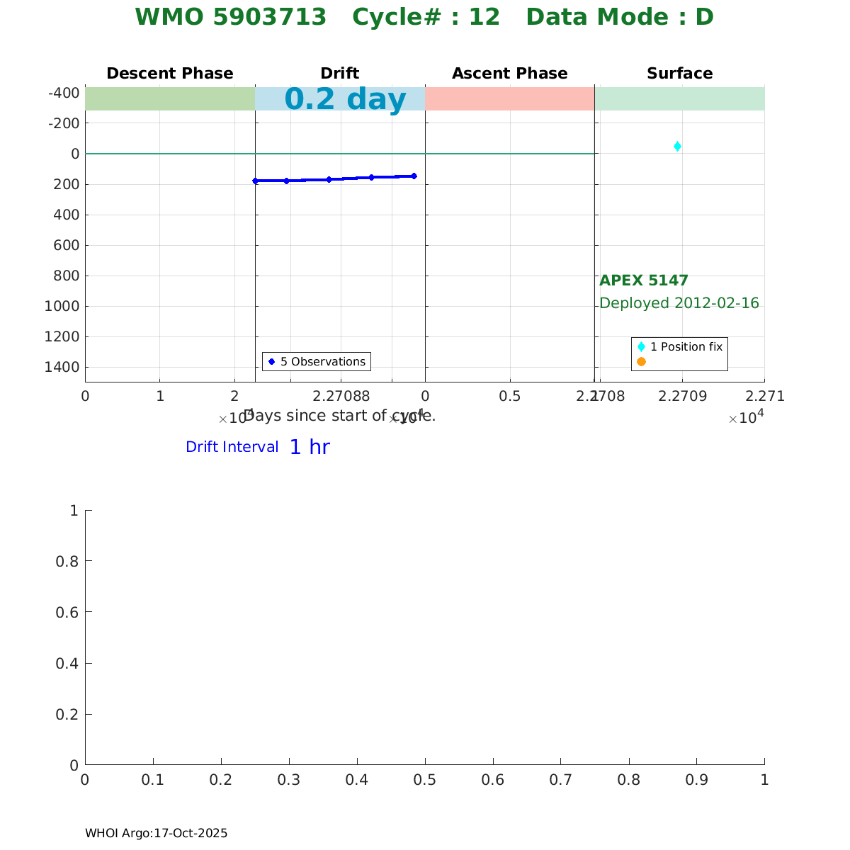 | WMO: #5903439 DAC: aoml PI: STEPHEN RISER APEX: #5331 SBE41: #5241 DRUCK_2900PSIA: #3177117 Altimeter Comparison (IFREMER) EuroArgo Link | ![]() |