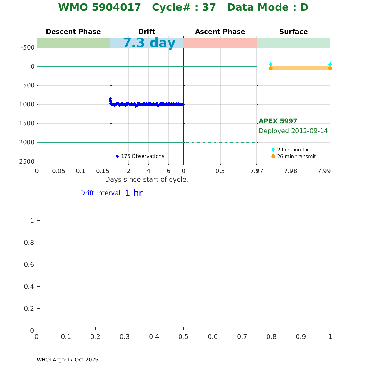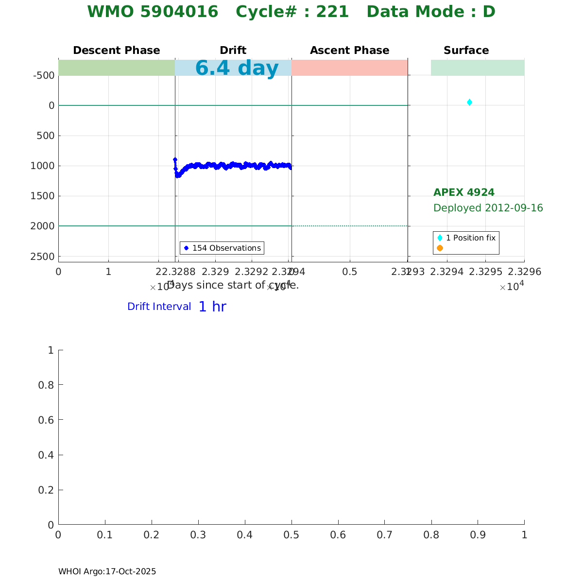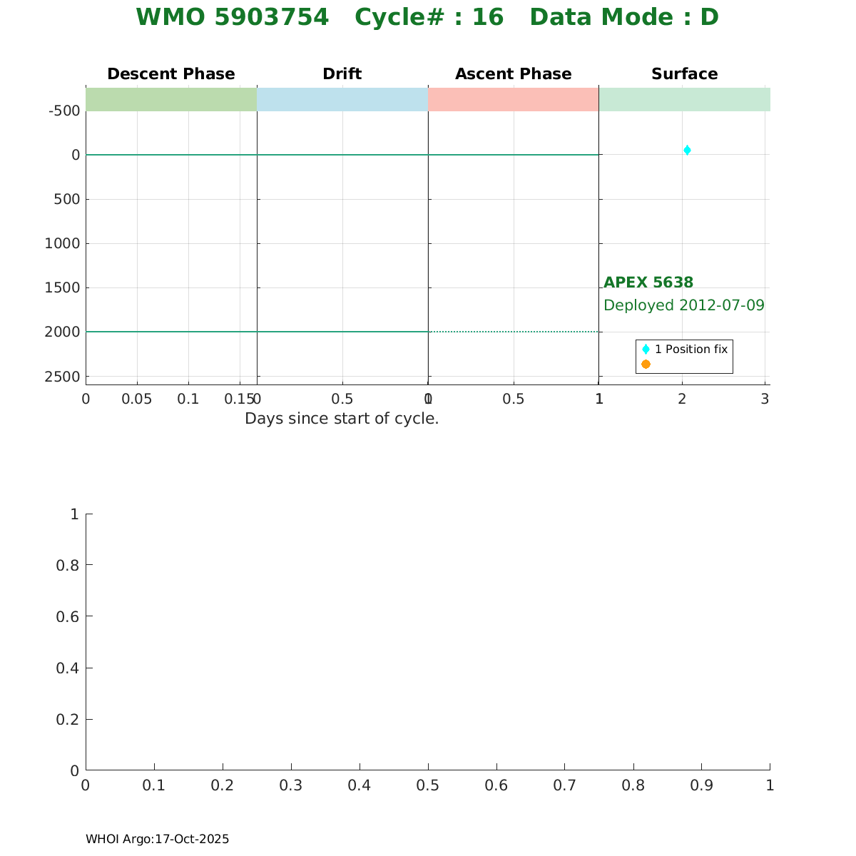 | WMO: #5903963 DAC: aoml PI: STEPHEN RISER APEX: #6028 SBE41: #5677 DRUCK_2900PSIA: #3246181 Altimeter Comparison (IFREMER) EuroArgo Link | ![]() |