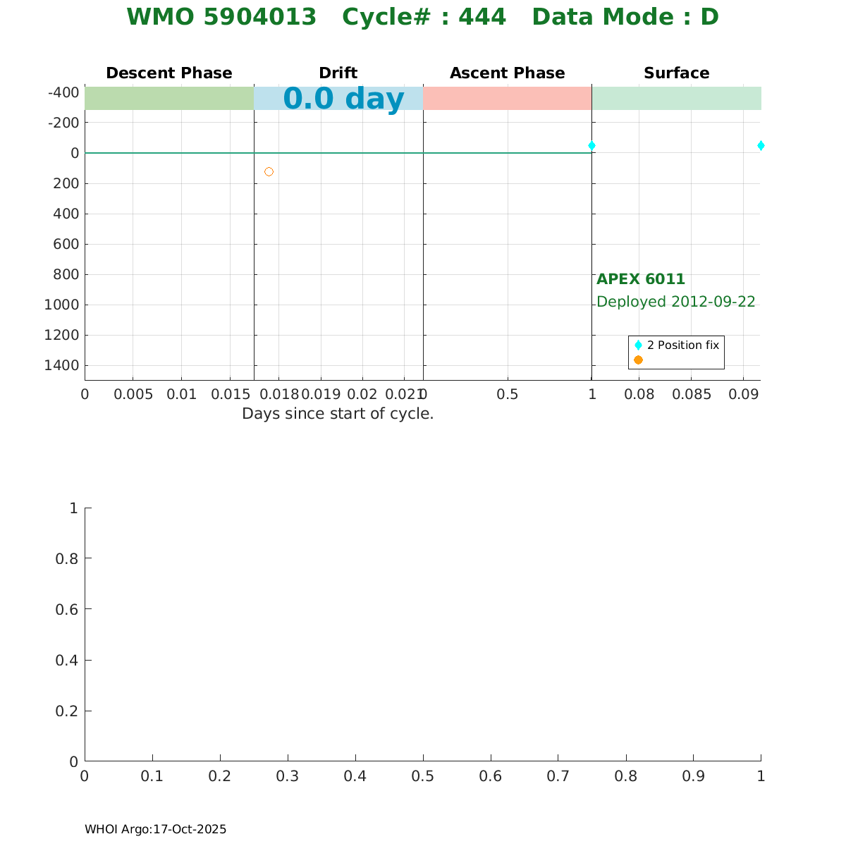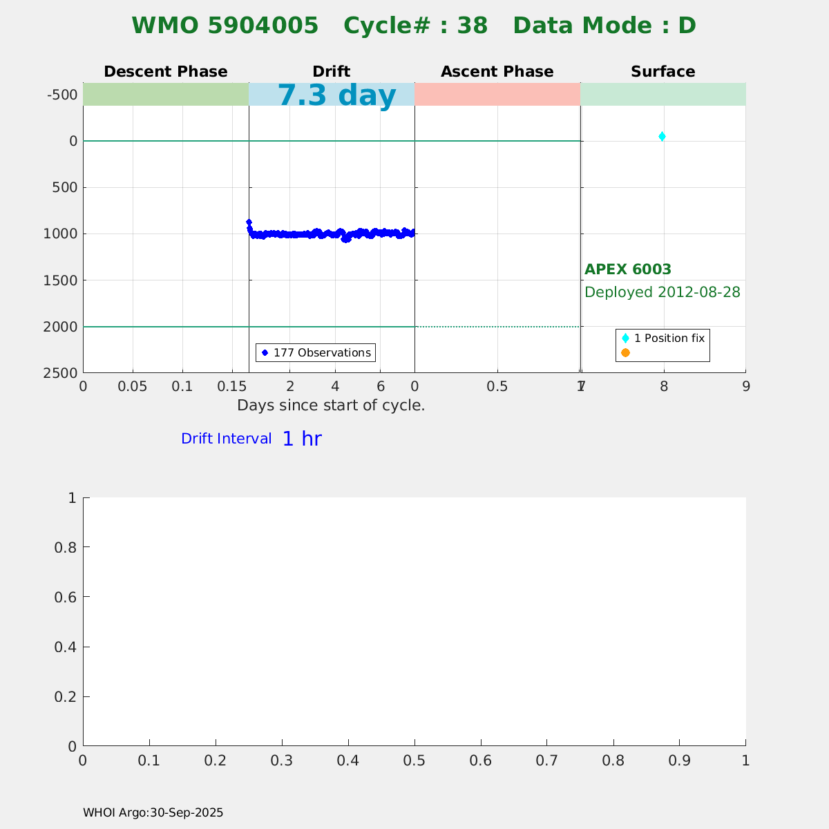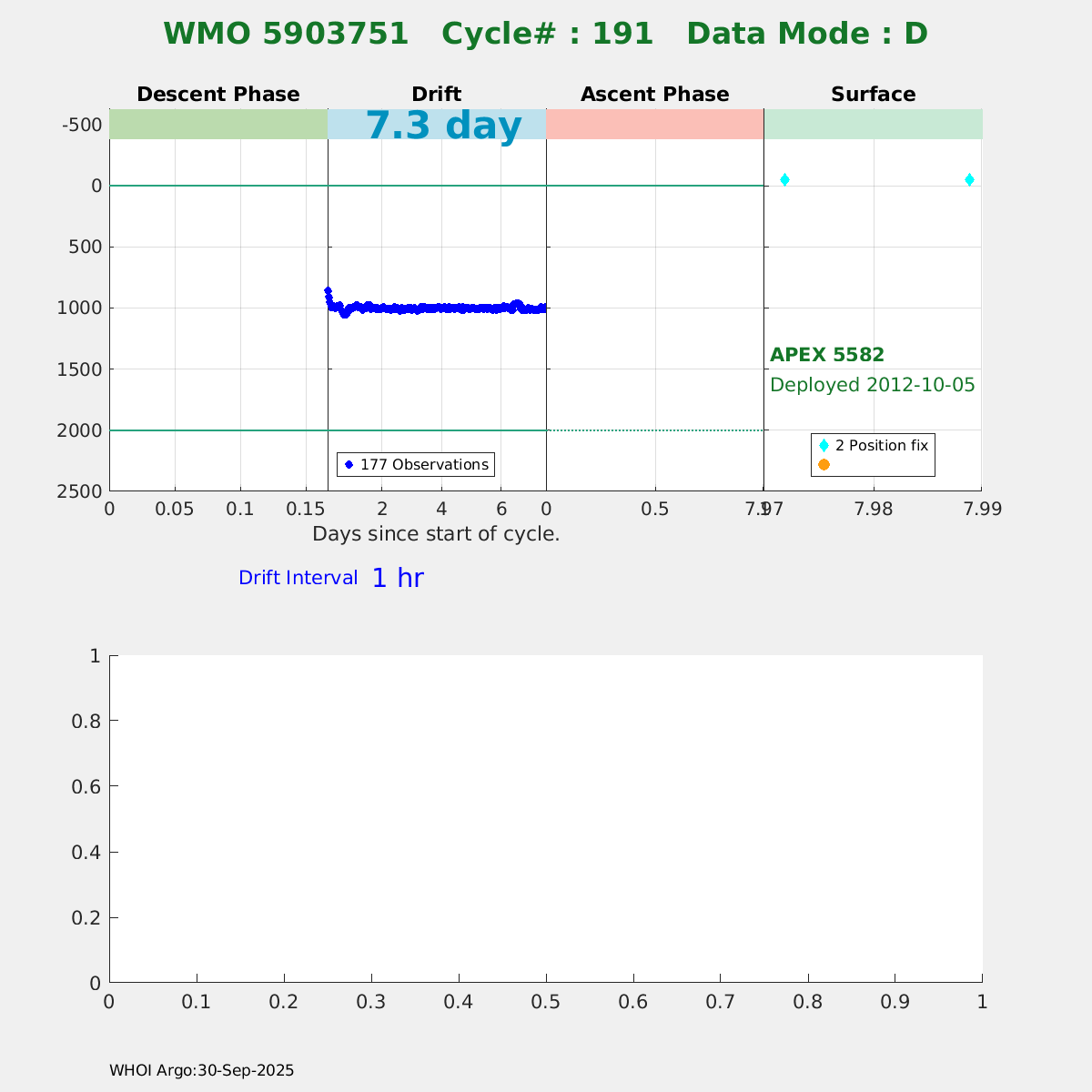 | WMO: #5903963 DAC: aoml PI: STEPHEN RISER APEX: #6028 SBE41: #5677 DRUCK_2900PSIA: #3246181 Altimeter Comparison (IFREMER) EuroArgo Link | ![]() |