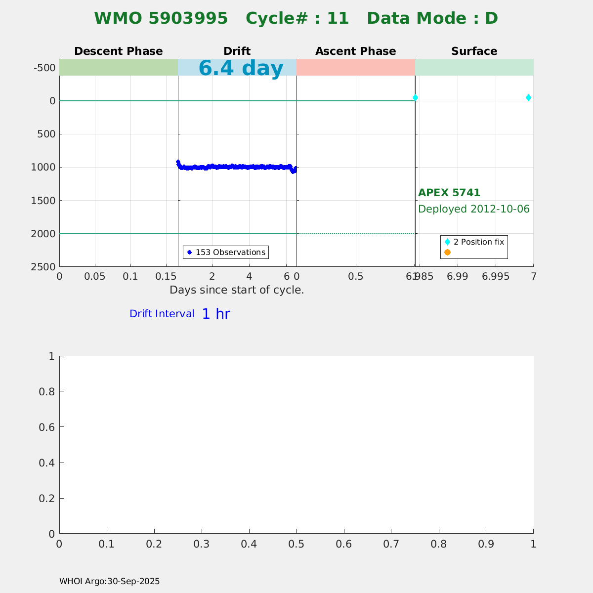 | WMO: #5903993 DAC: aoml PI: STEPHEN RISER APEX: #6123 SBE41: #5940 DRUCK_2900PSIA: #3205982 Altimeter Comparison (IFREMER) EuroArgo Link | ![]() |