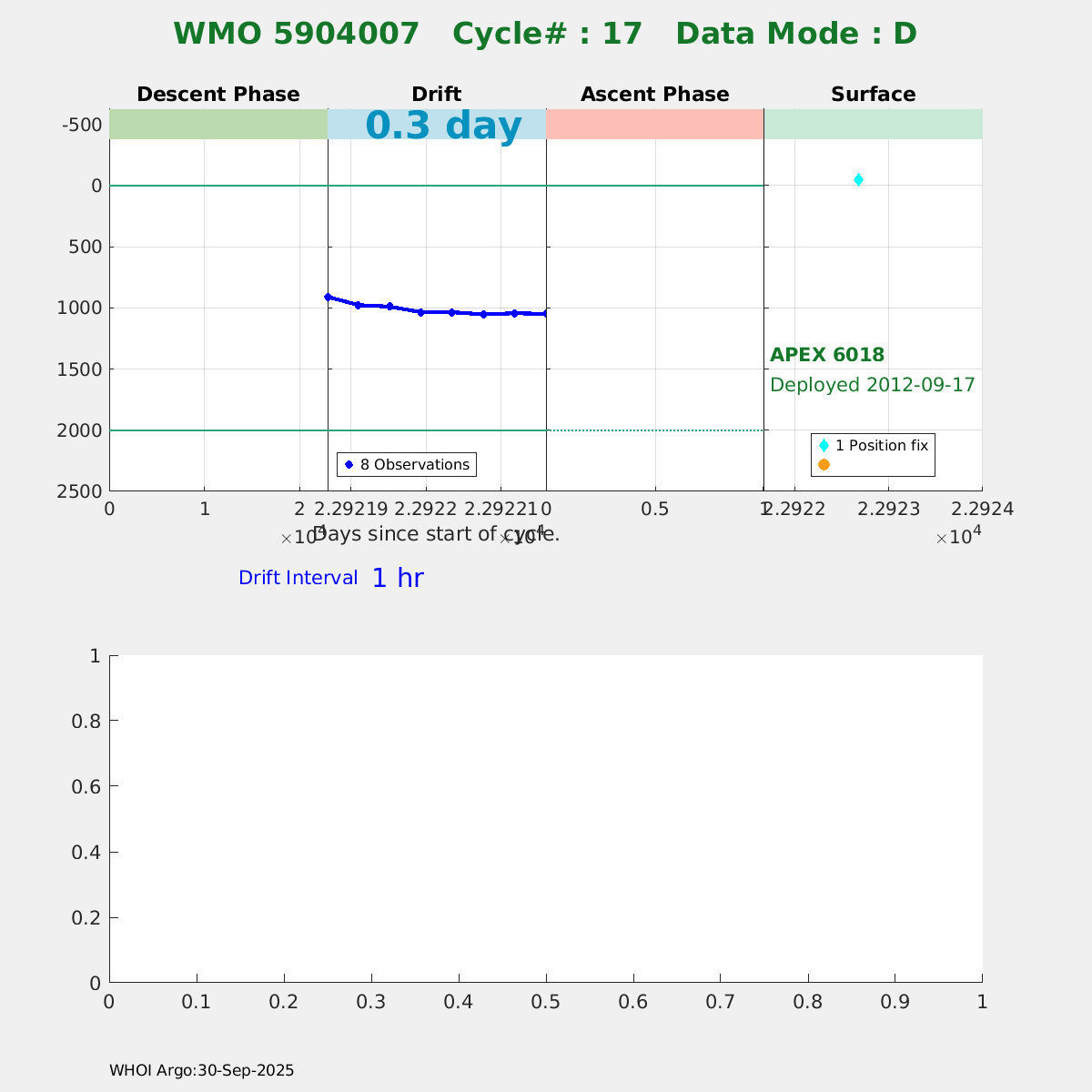 | WMO: #5904006 DAC: aoml PI: STEPHEN RISER APEX: #6005 SBE41CP: #3833 SBE_STS: #3833 DRUCK_2900PSIA: #3385136 Altimeter Comparison (IFREMER) EuroArgo Link | n/a | n/a | ![]() |