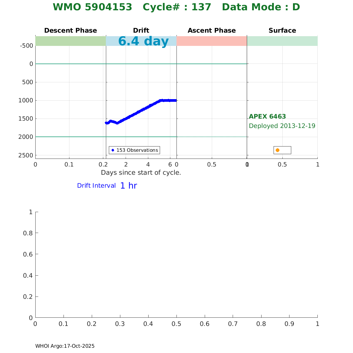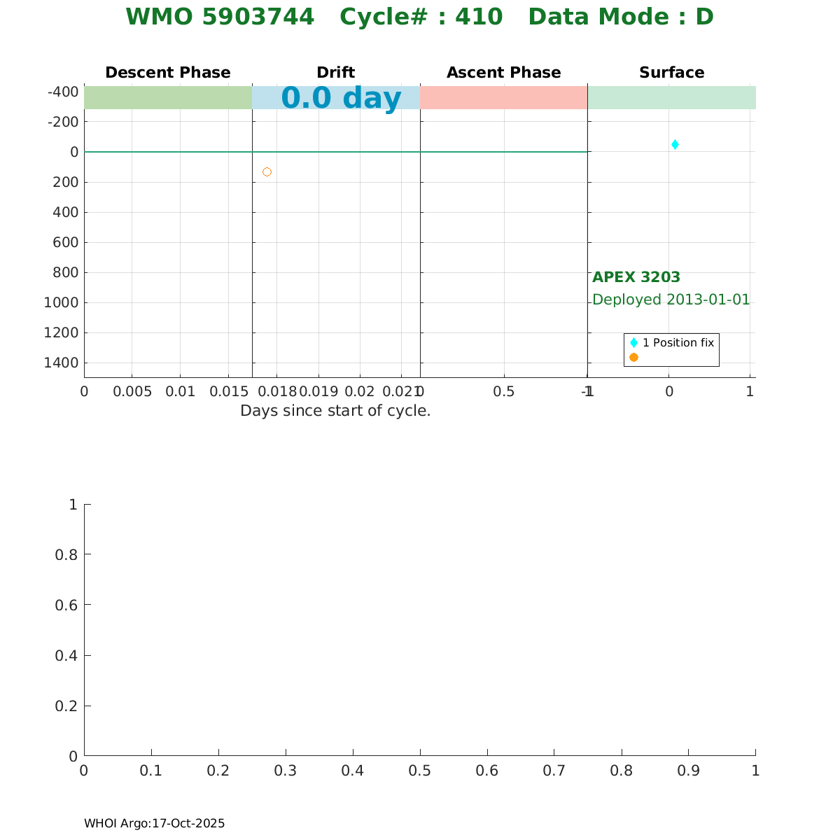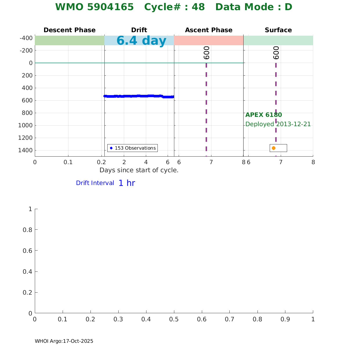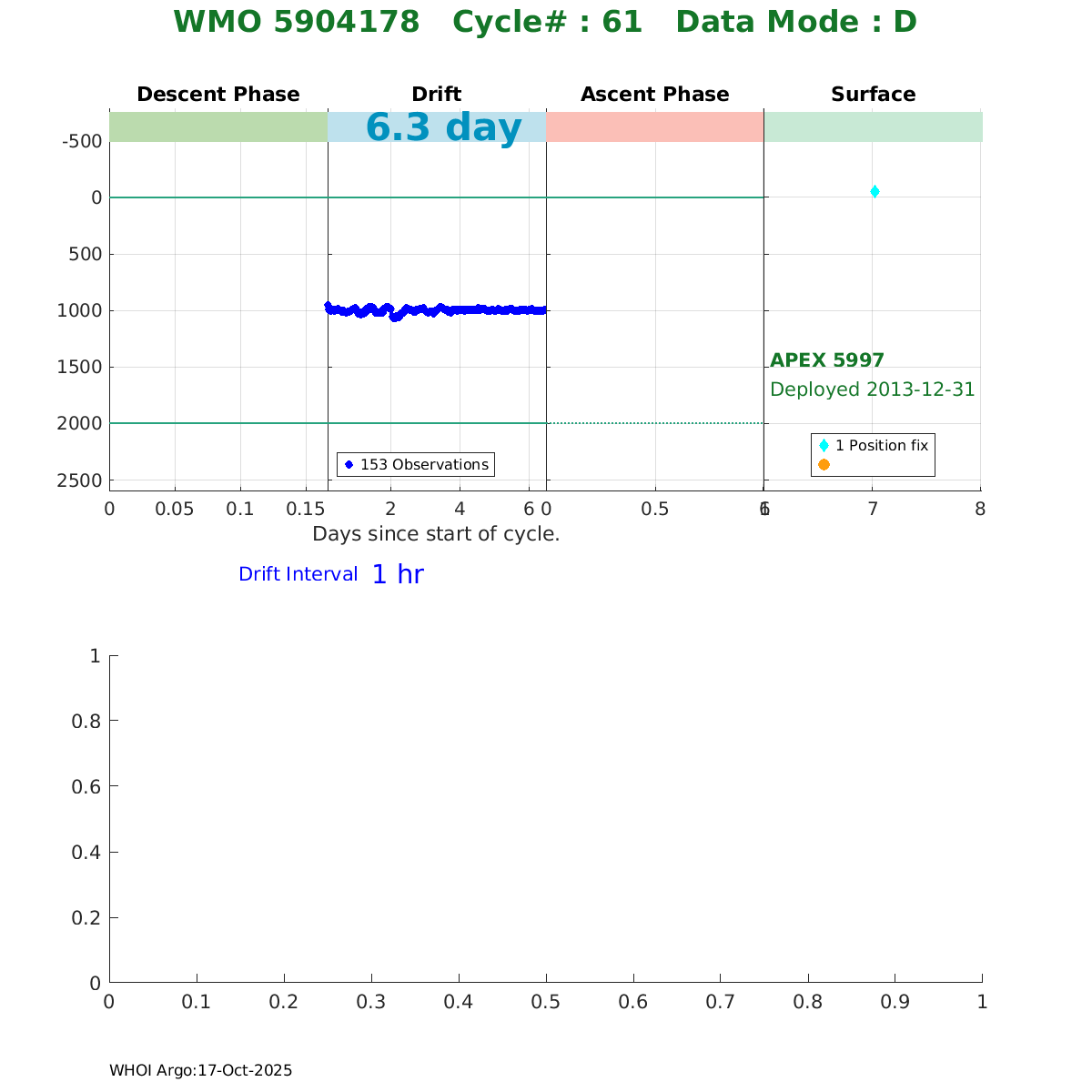 | WMO: #5903744 DAC: aoml PI: STEPHEN RISER APEX: #3203 SBE41CP: #2953 SBE_STS: #2953 DRUCK_2900PSIA: #3055536 Altimeter Comparison (IFREMER) EuroArgo Link | n/a | n/a | ![]() |