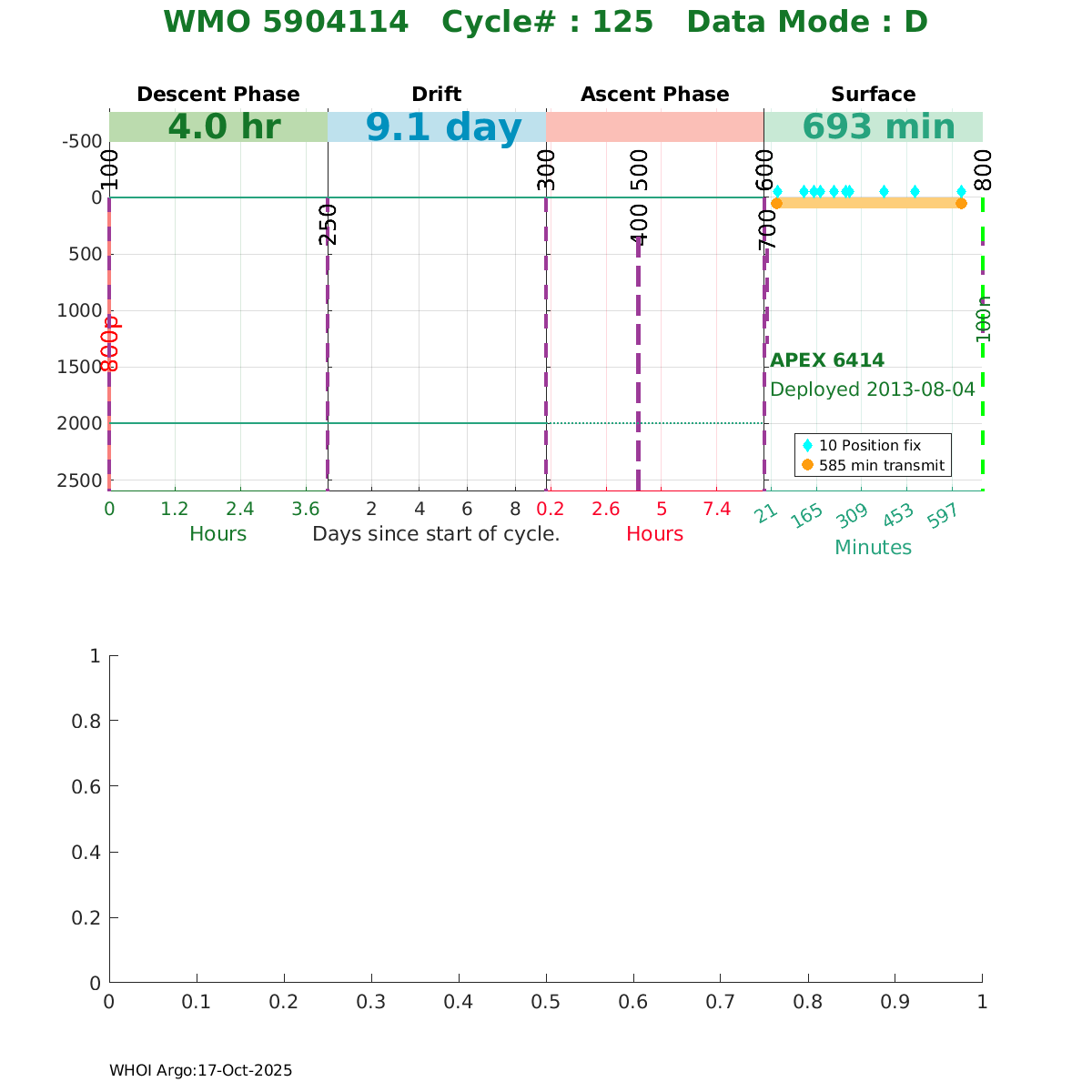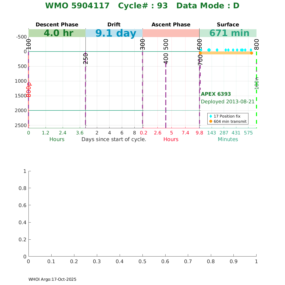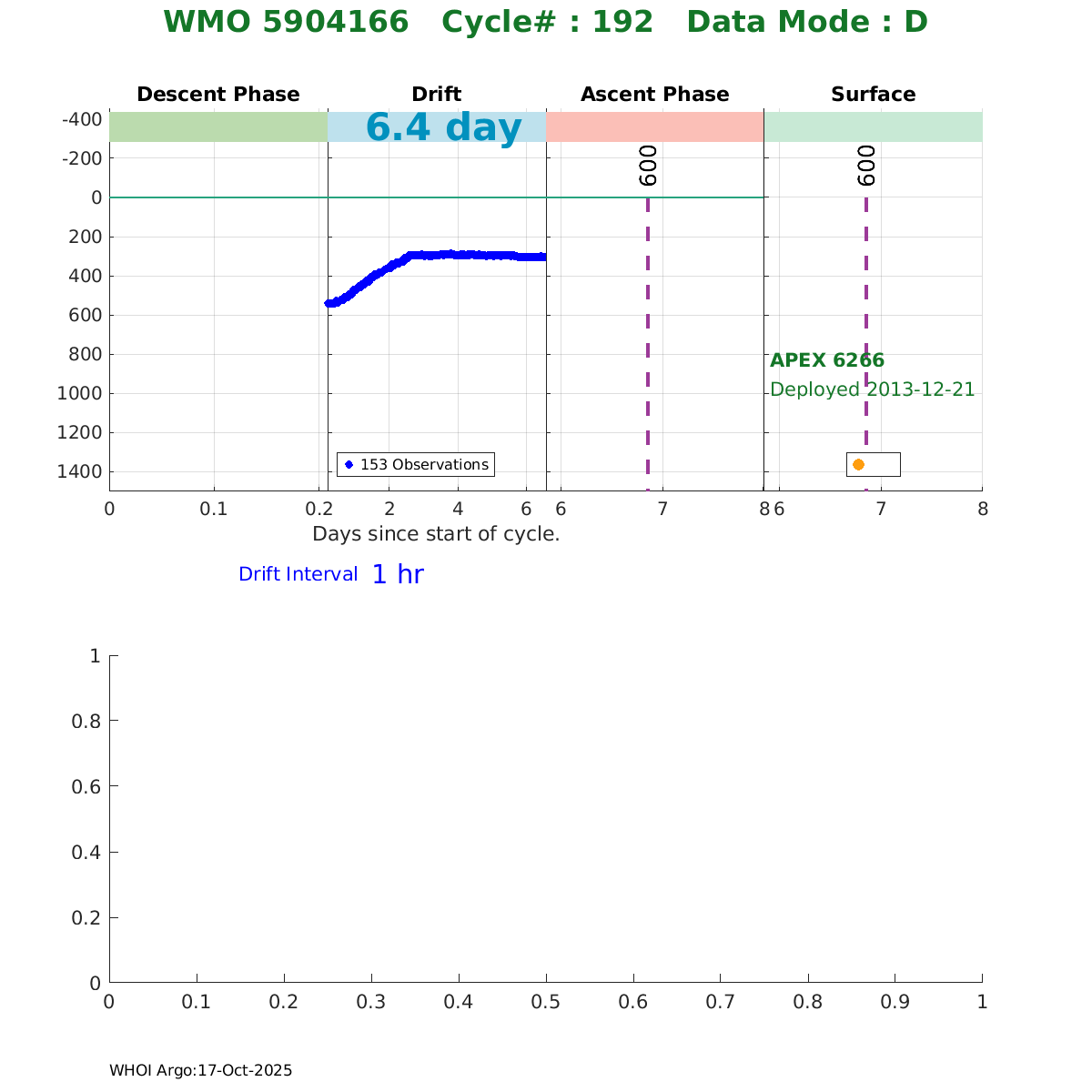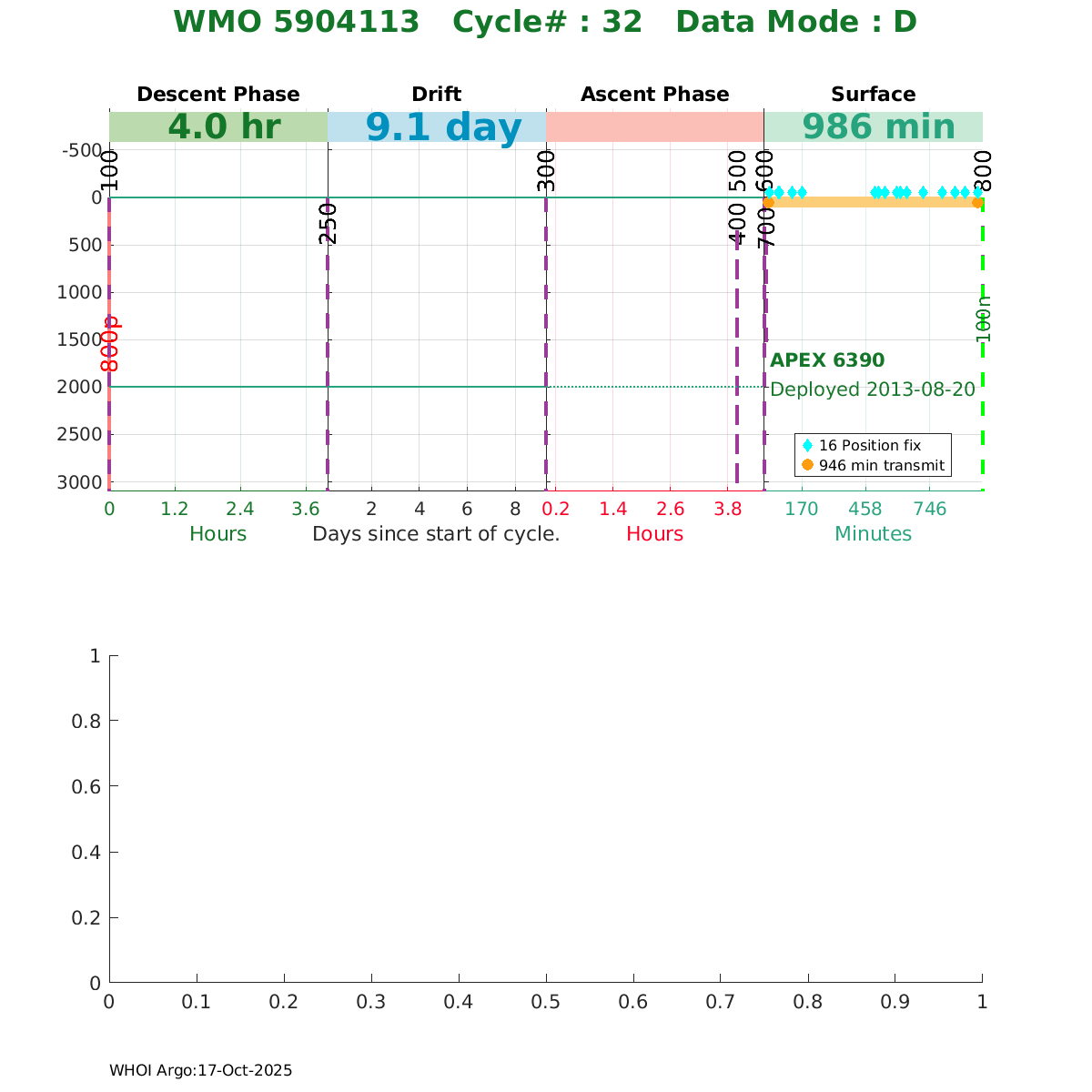 | WMO: #5903744 DAC: aoml PI: STEPHEN RISER APEX: #3203 SBE41CP: #2953 SBE_STS: #2953 DRUCK_2900PSIA: #3055536 Altimeter Comparison (IFREMER) EuroArgo Link | n/a | n/a | ![]() |