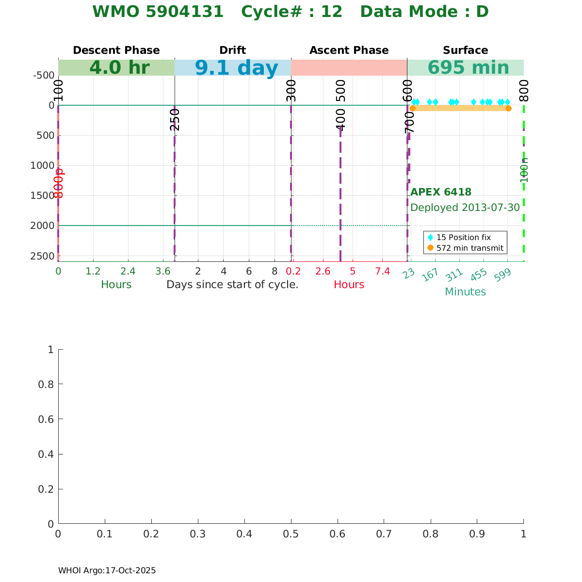 | WMO: #5904026 DAC: aoml PI: STEPHEN RISER APEX: #6175 SBE41CP: #4147 DRUCK_2900PSIA: #3401939 AANDERAA_OPTODE_4330: #0941 AANDERAA_OPTODE_4330: #0938 Altimeter Comparison (IFREMER) EuroArgo Link | ![]() |