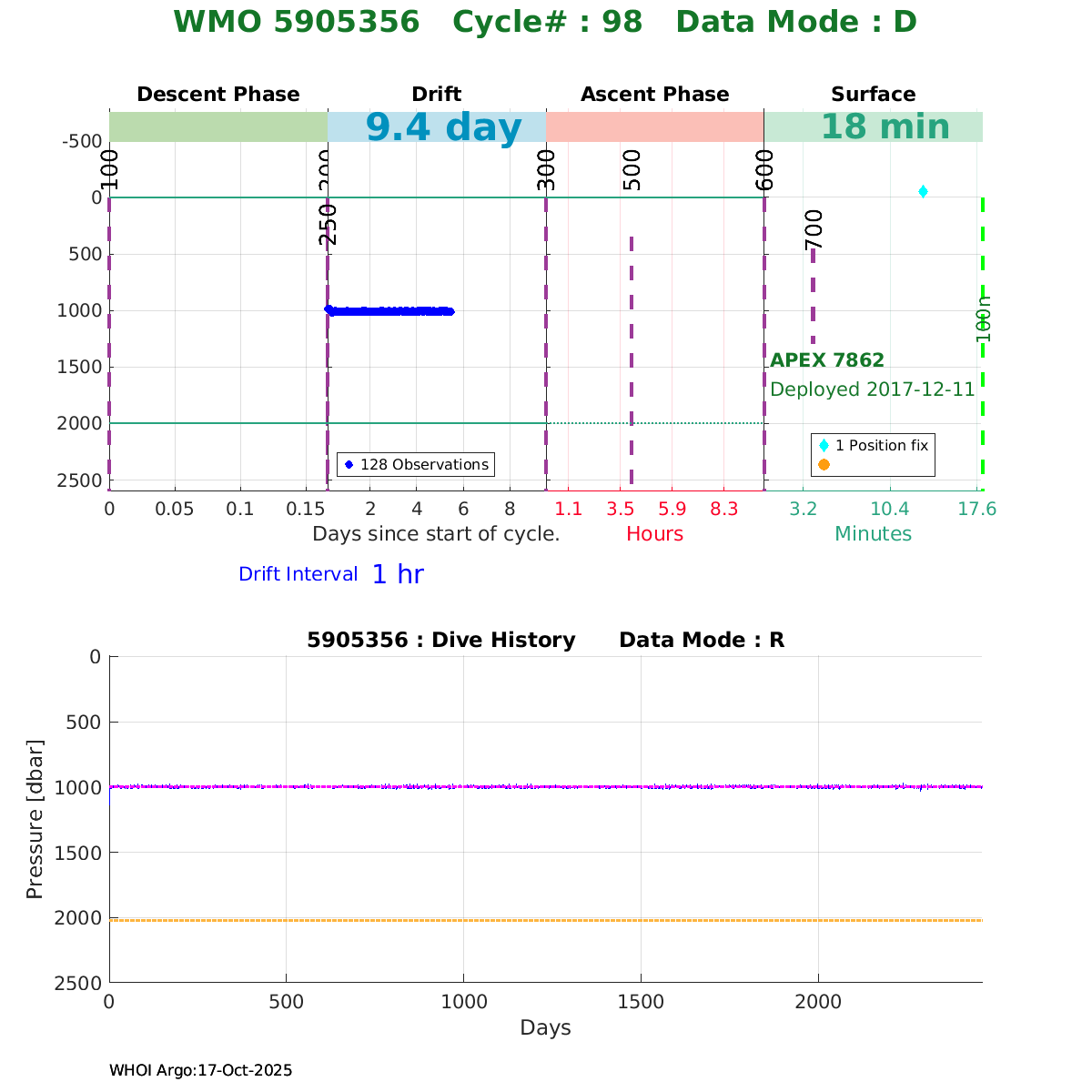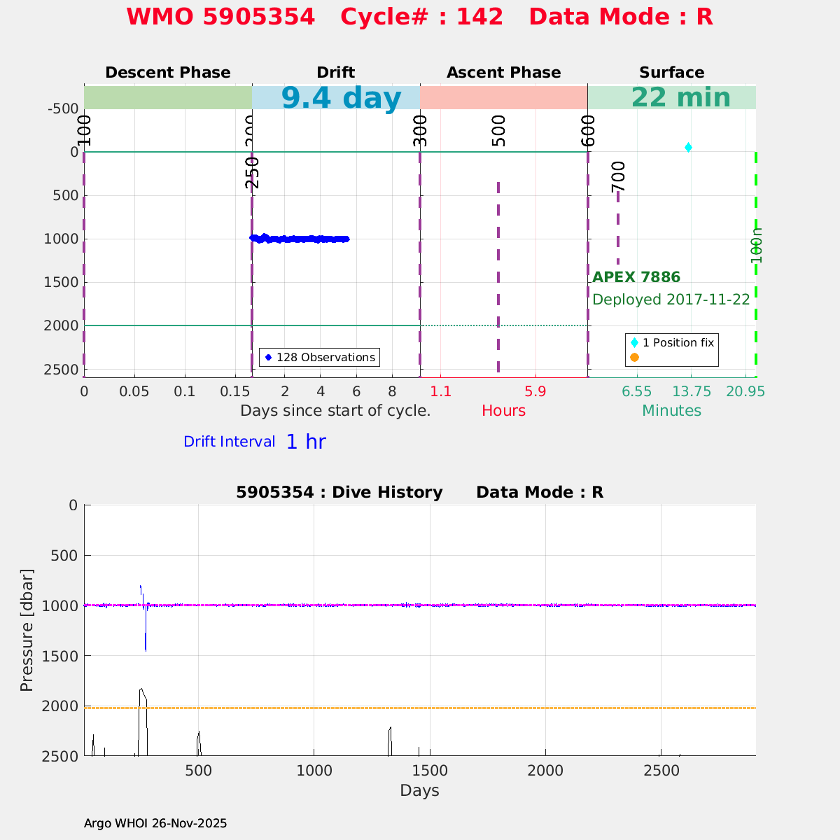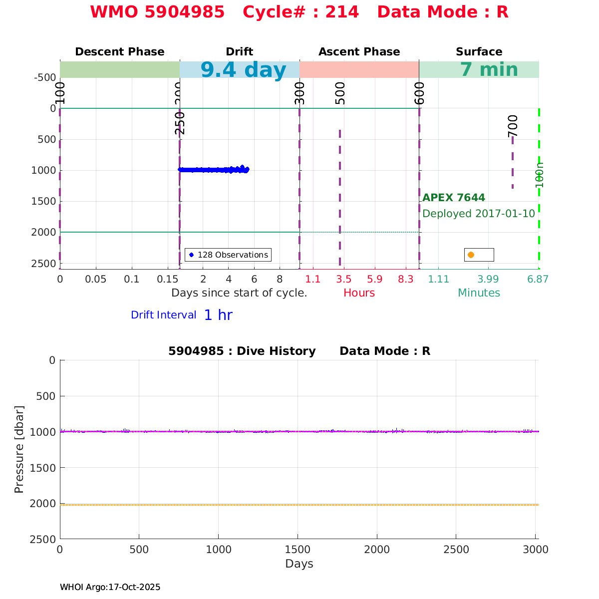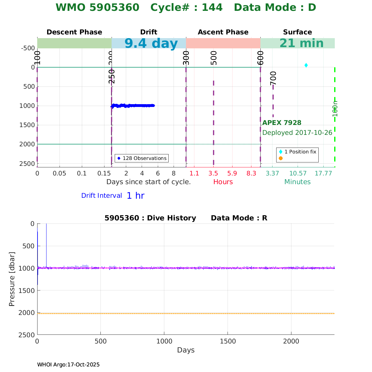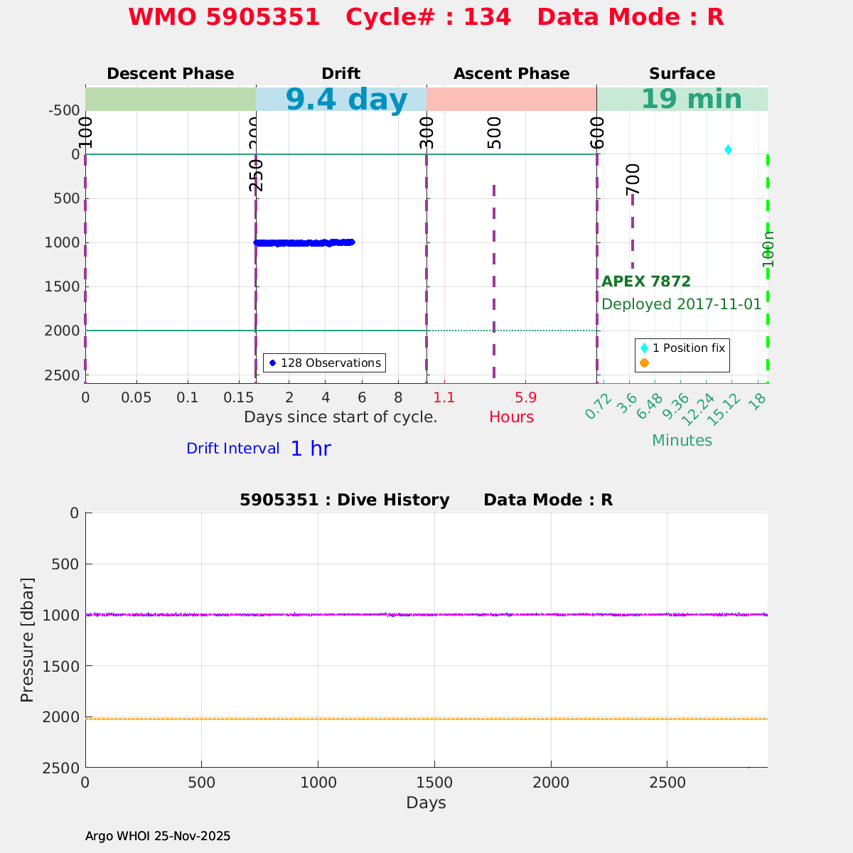 | WMO: #5905151 DAC: aoml PI: STEPHEN RISER APEX: #7855 SBE41CP: #8354 DRUCK_2900PSIA: #4924298 Altimeter Comparison (IFREMER) EuroArgo Link | ![]() |