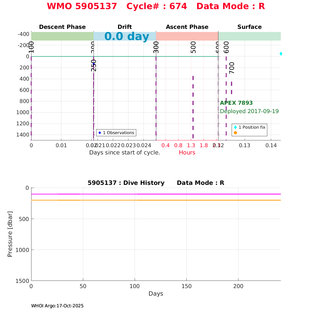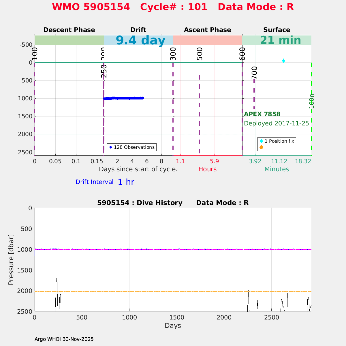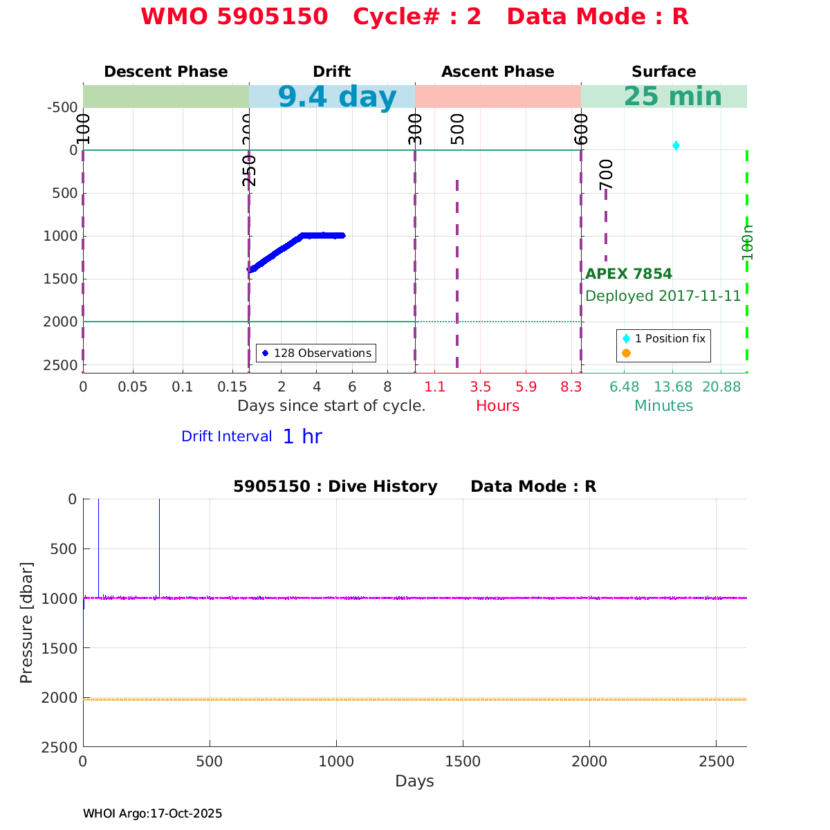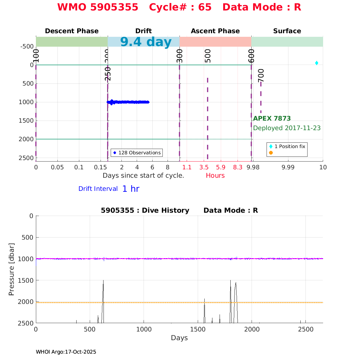 | WMO: #5905151 DAC: aoml PI: STEPHEN RISER APEX: #7855 SBE41CP: #8354 DRUCK_2900PSIA: #4924298 Altimeter Comparison (IFREMER) EuroArgo Link | ![]() |