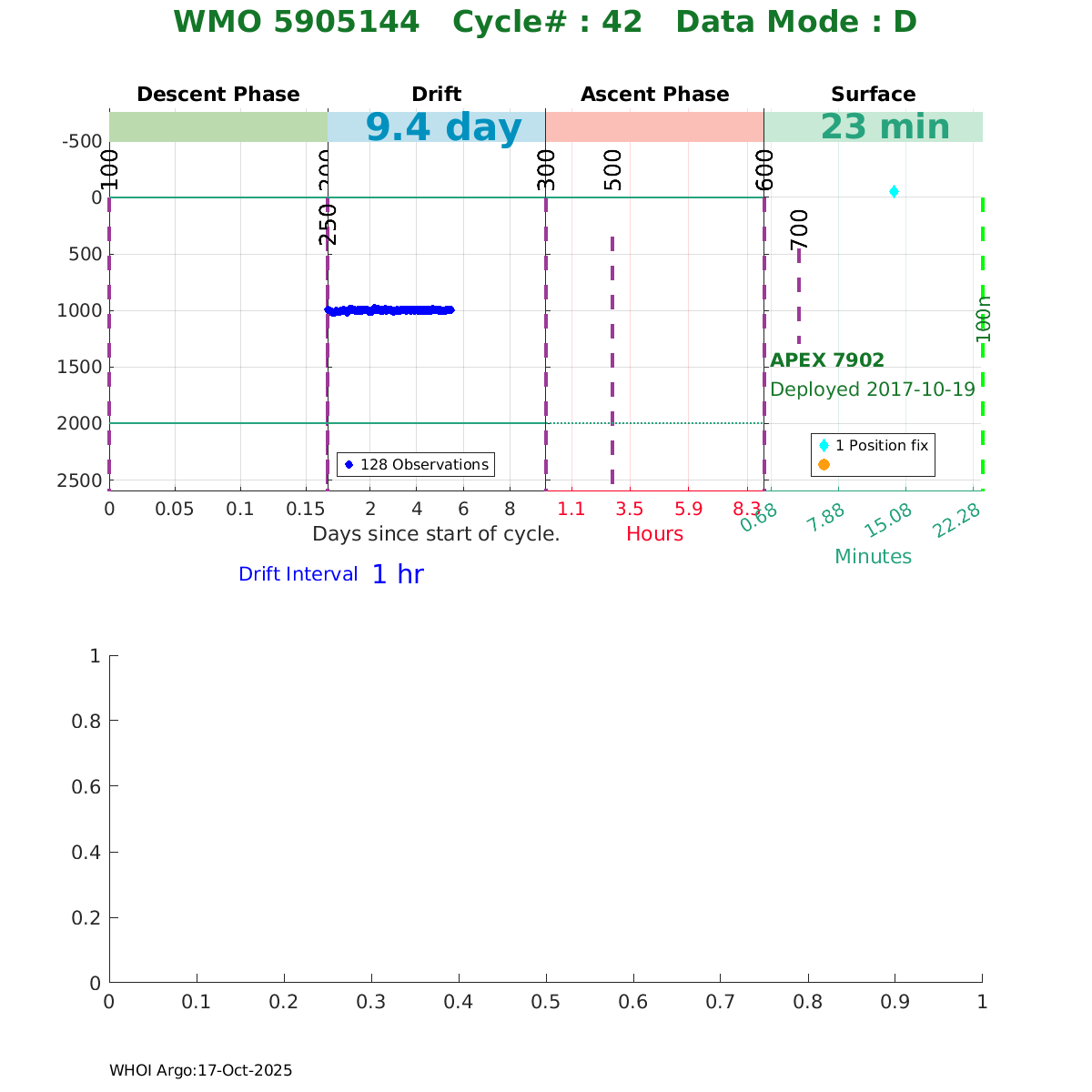 | WMO: #5905074 DAC: aoml PI: STEPHEN RISER, KENNETH JOHNSON NAVIS_A: #693 SBE41CP: #8572 DRUCK_2900PSIA: #10300884 SBE63_OPTODE: #1379 SUNA: #0823 SEAFET: #0142 MCOMS_FLBBCD: #0141 Altimeter Comparison (IFREMER) EuroArgo Link | n/a | n/a | ![]() |