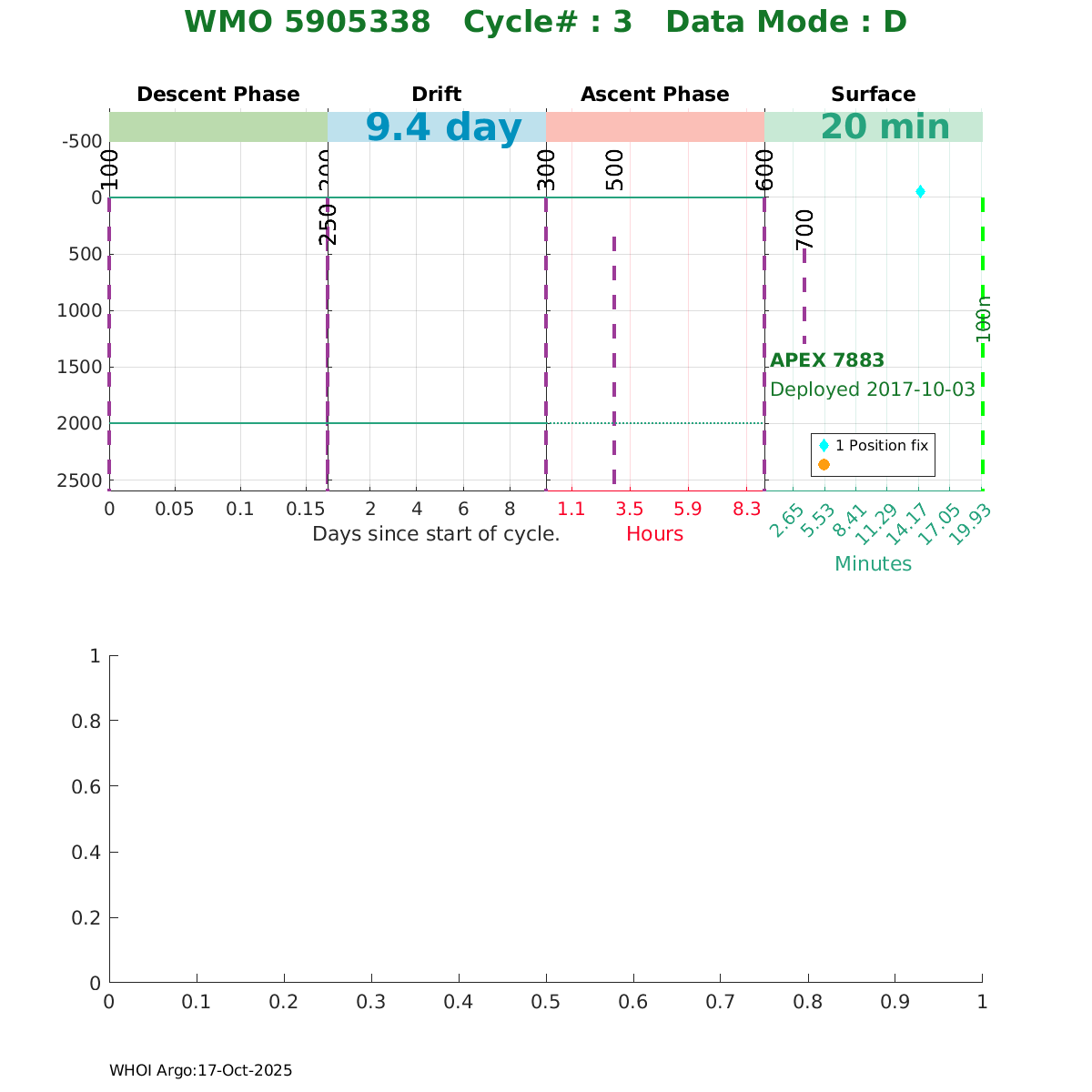 | WMO: #5905339 DAC: aoml PI: STEPHEN RISER APEX: #7885 SBE41CP: #8797 DRUCK_2900PSIA: #10300316 Altimeter Comparison (IFREMER) EuroArgo Link | ![]() |
