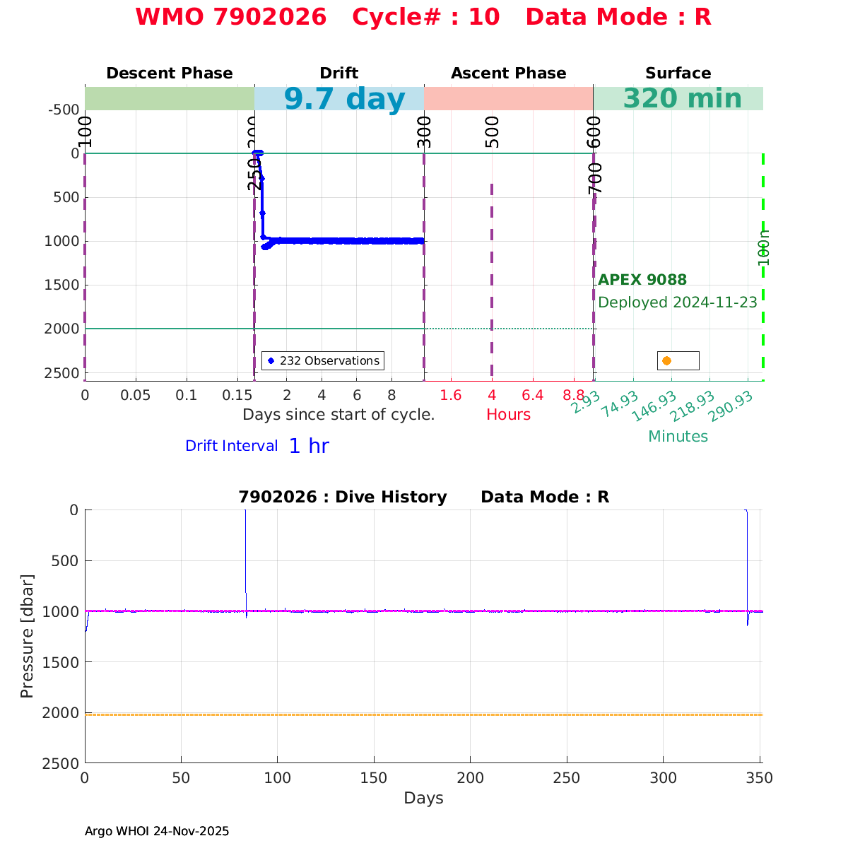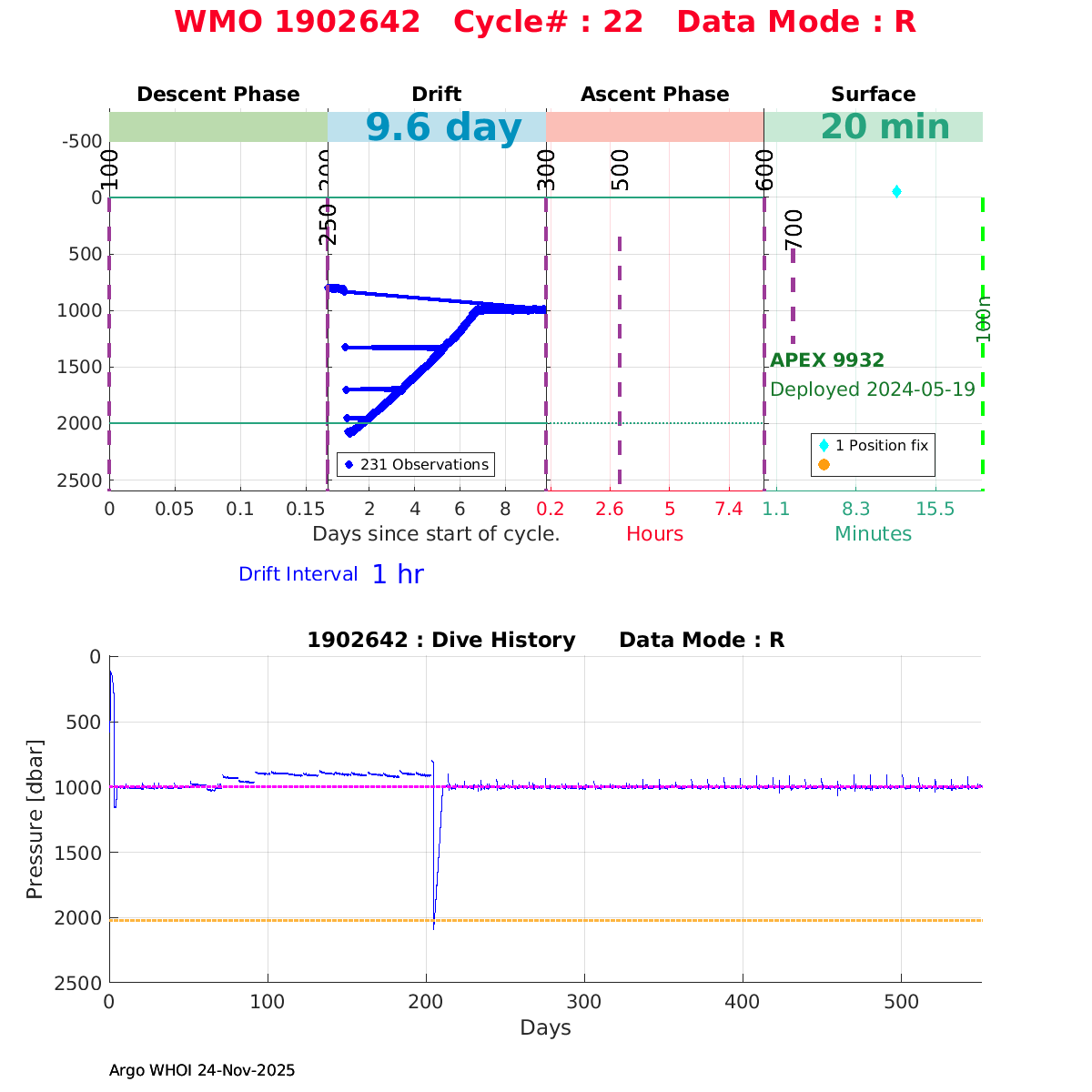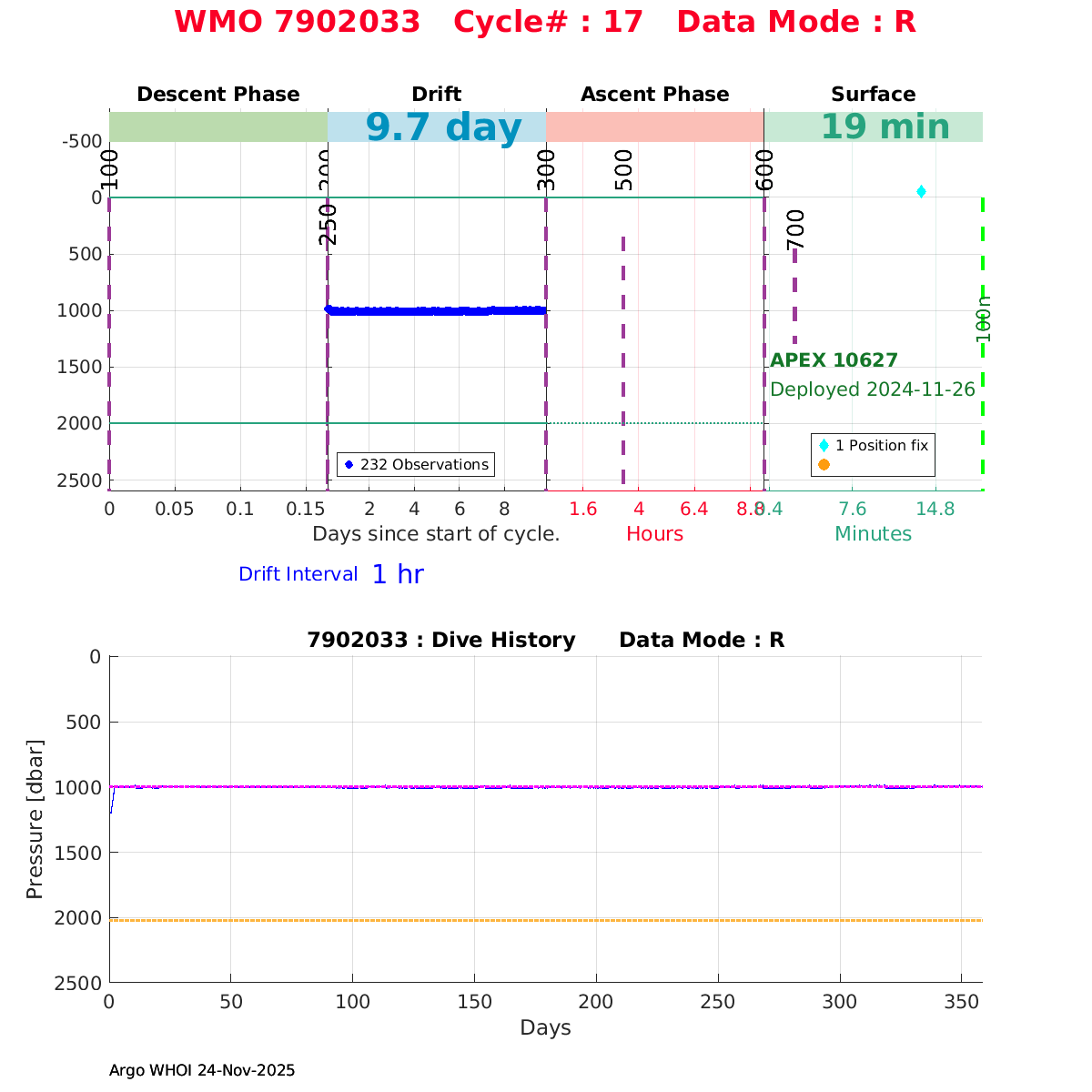 | WMO: #7902046 DAC: aoml PI: STEPHEN RISER APEX: #10265 SBE41CP: #18364 DRUCK_2900PSIA: #12263232 Altimeter Comparison (IFREMER) EuroArgo Link | ![]() |