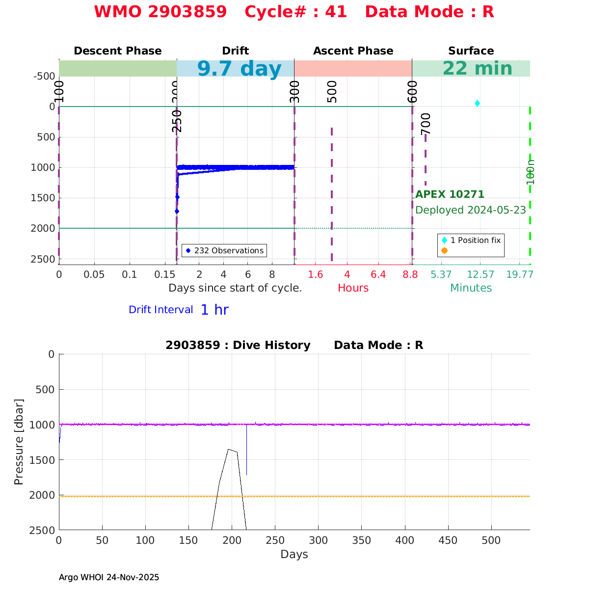| WMO: #4903757 DAC: aoml PI: STEPHEN RISER/KEN JOHNSON APEX: #10031 SBE41CP: #18532 DRUCK_2900PSIA: #12293161 AANDERAA_OPTODE_4330: #4065 ISUS: #1079 DURA: #1079 ECO_FLBB_AP2: #7972 Altimeter Comparison (IFREMER) EuroArgo Link | ![]() |