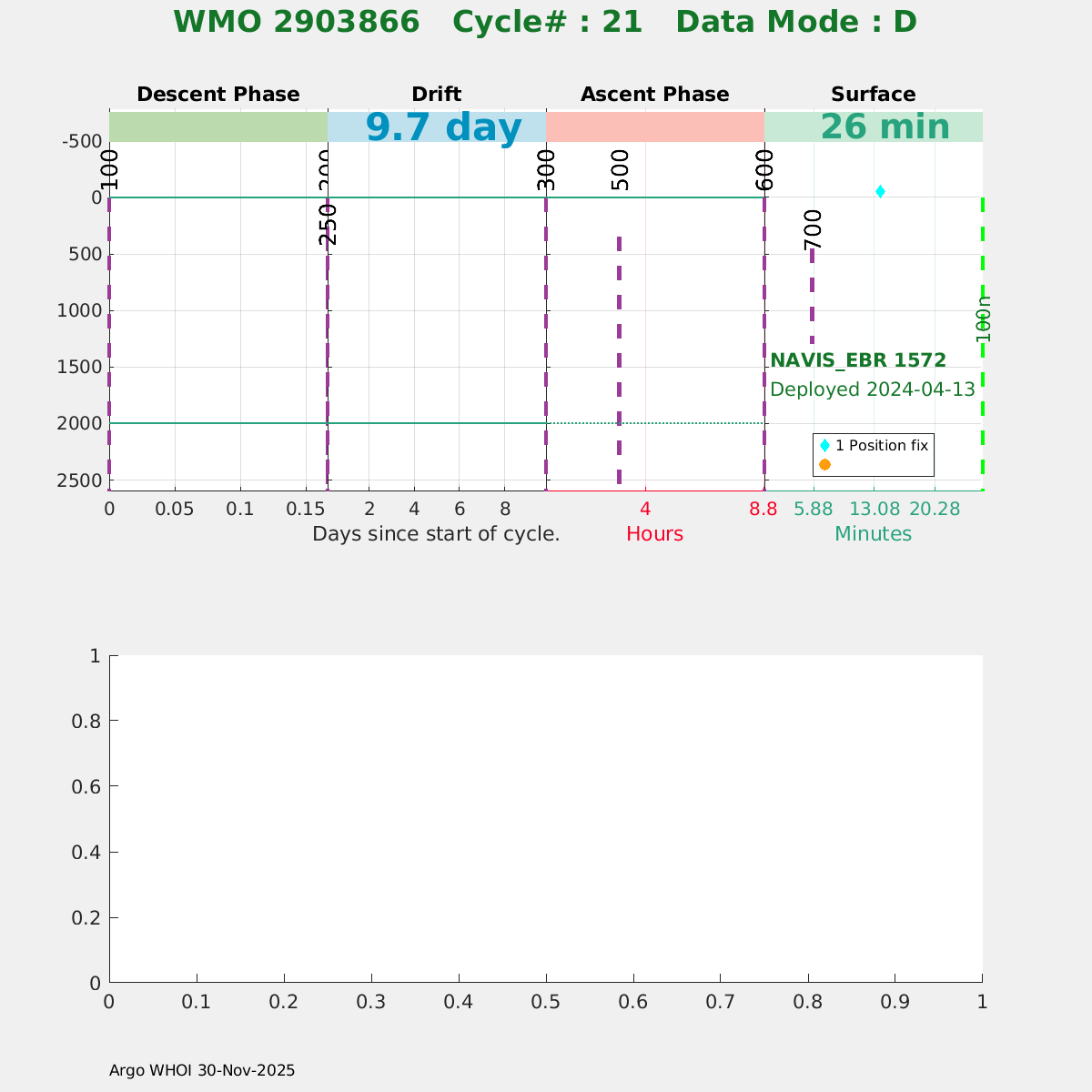 | WMO: #2903865 DAC: aoml PI: STEPHEN RISER/KEN JOHNSON APEX: #9547 SBE41CP: #17349 DRUCK_2900PSIA: #12096251 AANDERAA_OPTODE_4330: #3845 ISUS: #1069 DURA: #1069 ECO_FLBB_AP2: #7501 Altimeter Comparison (IFREMER) EuroArgo Link | ![]() |