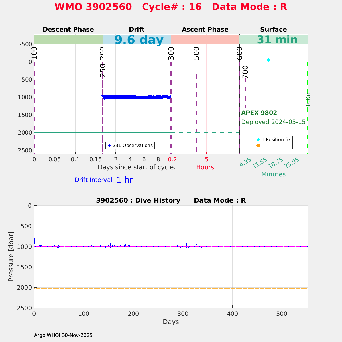 | WMO: #7902001 DAC: aoml PI: STEPHEN RISER APEX: #9837 SBE41CP: #16525 DRUCK_2900PSIA: #11963090 Altimeter Comparison (IFREMER) EuroArgo Link | ![]() |