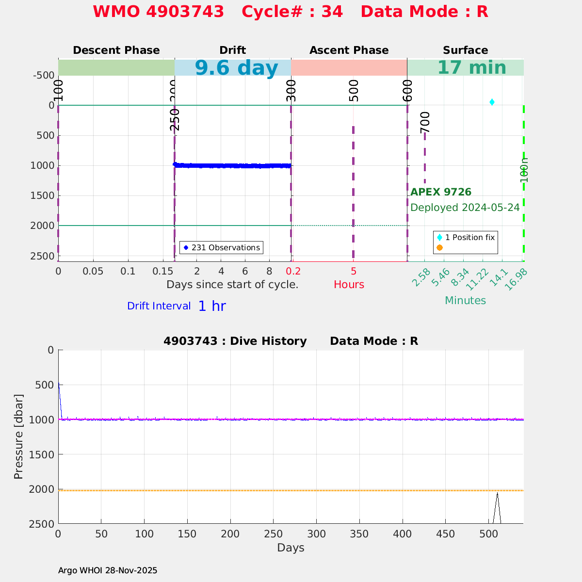 | WMO: #4903743 DAC: aoml PI: STEPHEN RISER APEX: #9726 SBE41CP: #16616 DRUCK_2900PSIA: #11963022 Altimeter Comparison (IFREMER) EuroArgo Link | ![]() |