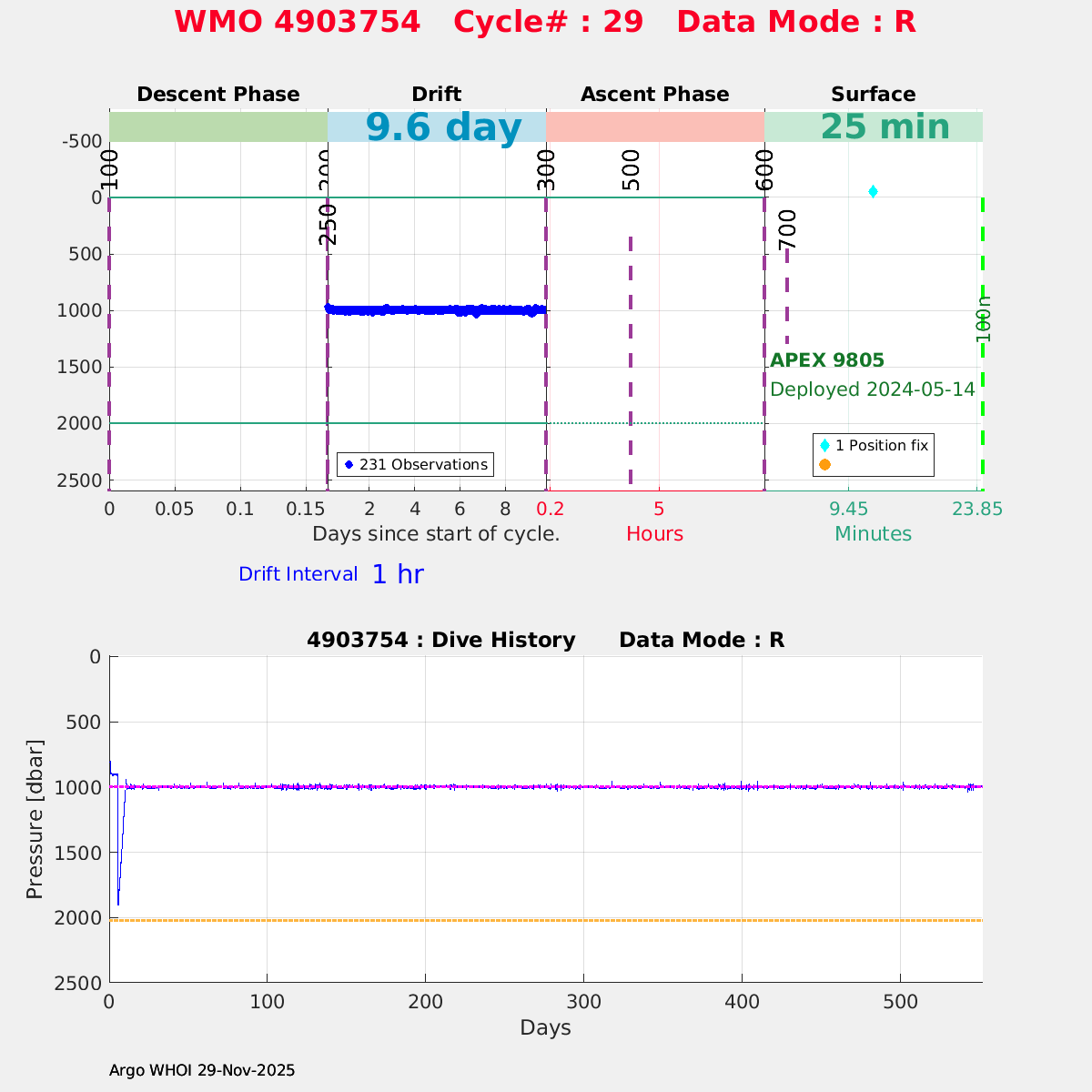 | WMO: #4903754 DAC: aoml PI: STEPHEN RISER APEX: #9805 SBE41CP: #16522 DRUCK_2900PSIA: #11963087 Altimeter Comparison (IFREMER) EuroArgo Link | ![]() |
