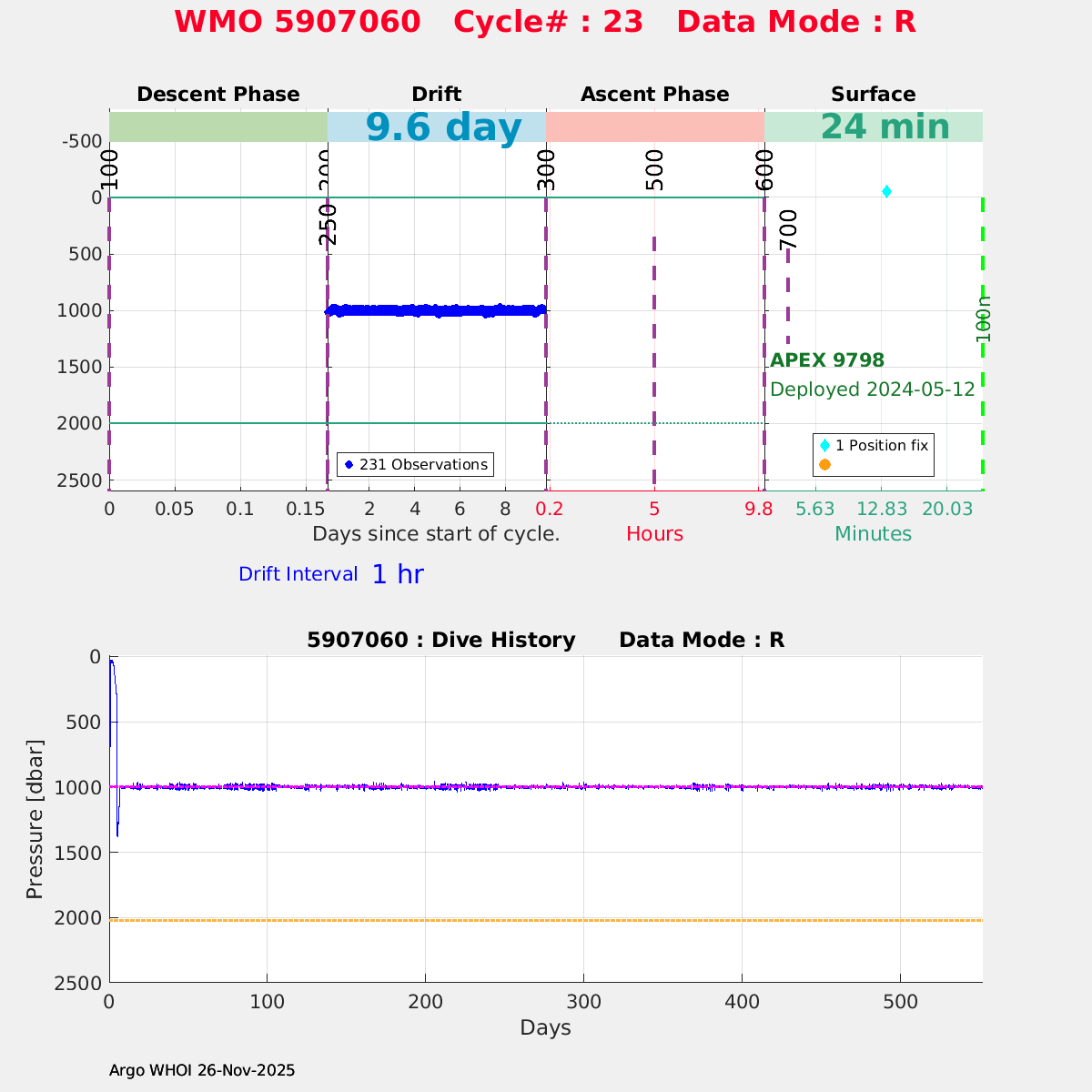 | WMO: #5907060 DAC: aoml PI: STEPHEN RISER APEX: #9798 SBE41CP: #14152 DRUCK_2900PSIA: #11685324 Altimeter Comparison (IFREMER) EuroArgo Link | ![]() |