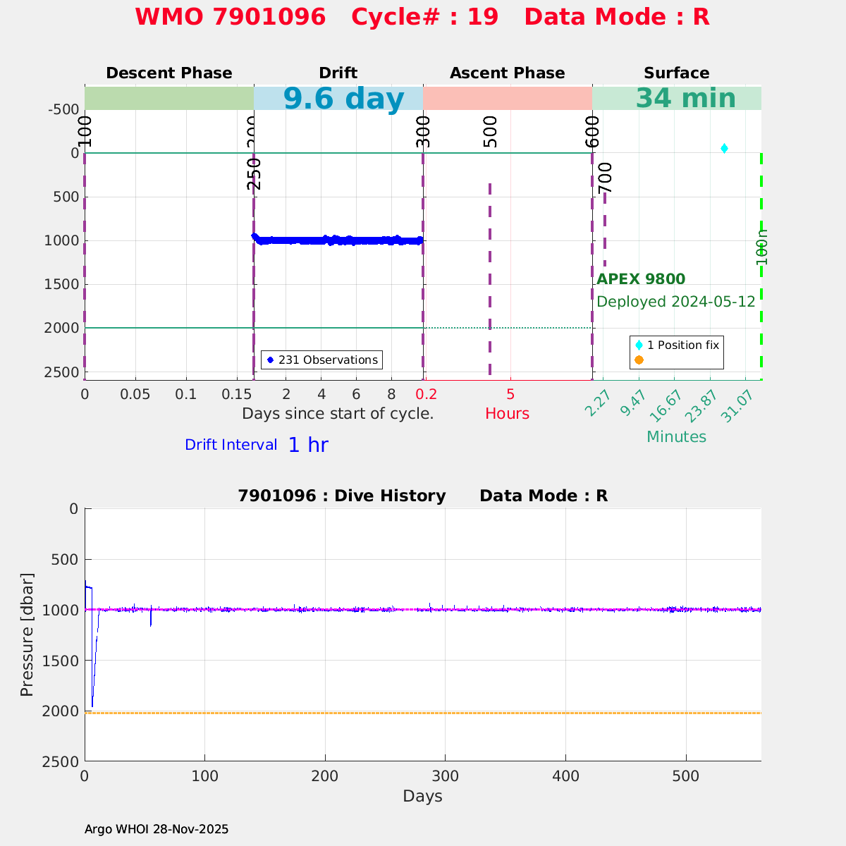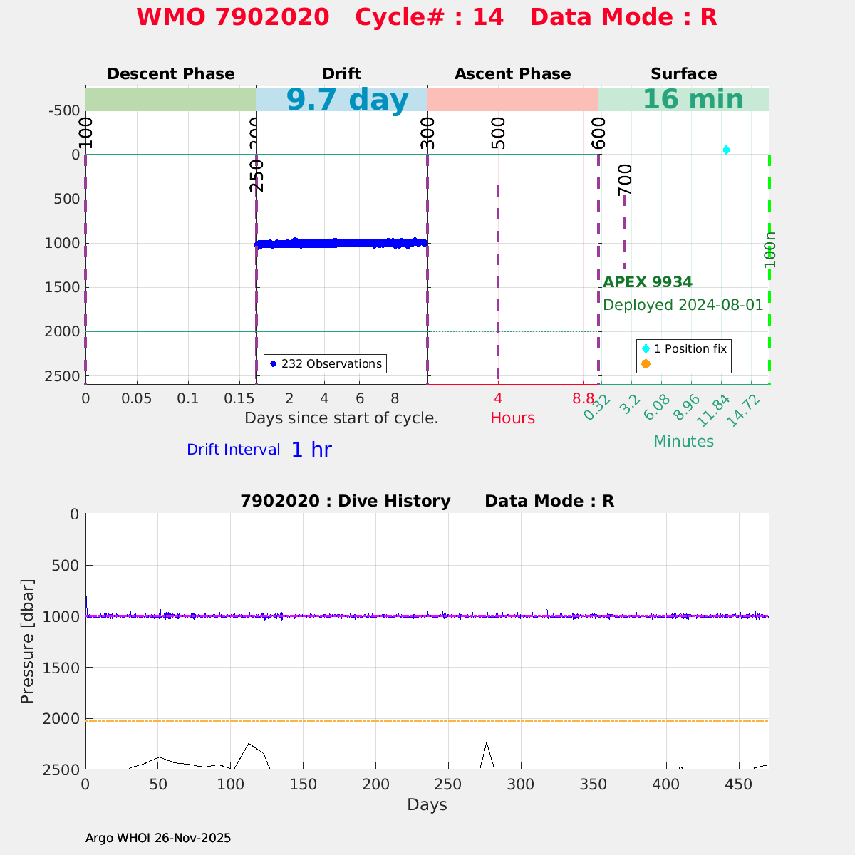 | WMO: #7901100 DAC: aoml PI: STEPHEN RISER APEX: #9728 SBE41CP: #16518 DRUCK_2900PSIA: #11976888 Altimeter Comparison (IFREMER) EuroArgo Link | ![]() |