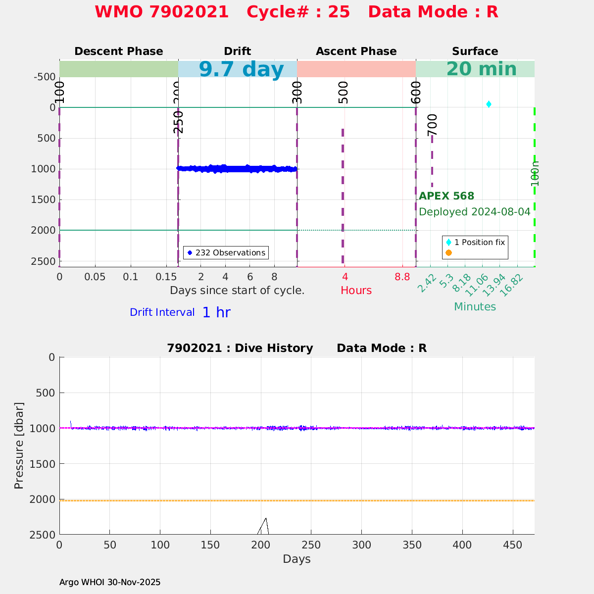 | WMO: #7902140 DAC: aoml PI: STEPHEN RISER/KEN JOHNSON APEX: #10309 SBE41CP: #18927 DRUCK_2900PSIA: #12182548 AANDERAA_OPTODE_4330: #4039 ISUS: #1124 DURA: #1124 UNKNOWN: #7715 ECO_FLBBFL_AP2: #7715 Altimeter Comparison (IFREMER) EuroArgo Link | ![]() |