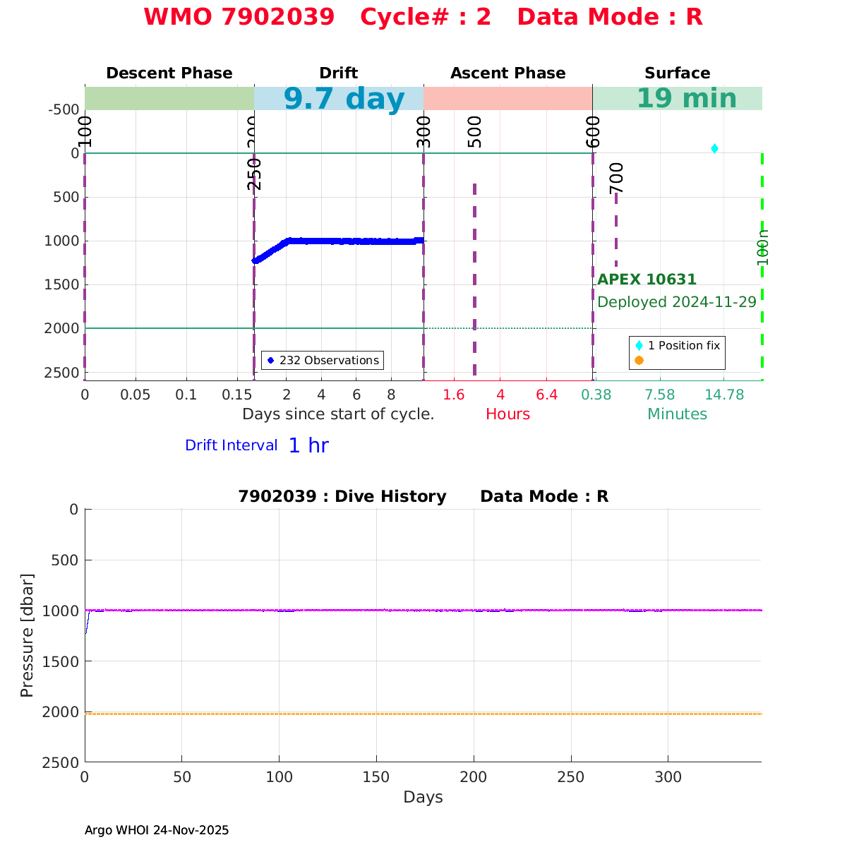 | WMO: #7902047 DAC: aoml PI: STEPHEN RISER APEX: #10632 SBE41CP: #19573 DRUCK_2900PSIA: #12373070 Altimeter Comparison (IFREMER) EuroArgo Link | ![]() |