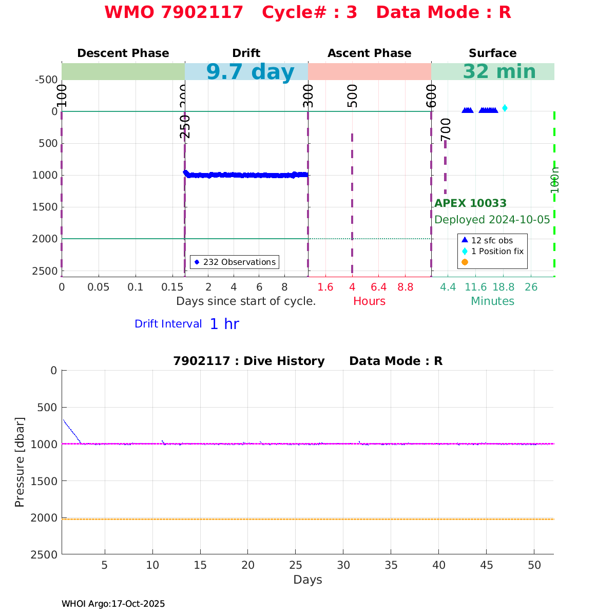 | WMO: #7902117 DAC: aoml PI: STEPHEN RISER/KEN JOHNSON APEX: #10033 SBE41CP: #18682 DRUCK_2900PSIA: #12310710 AANDERAA_OPTODE_4330: #4060 ISUS: #1084 UNKNOWN: #1084 ECO_FLBB_AP2: #7525 Altimeter Comparison (IFREMER) EuroArgo Link | ![]() |