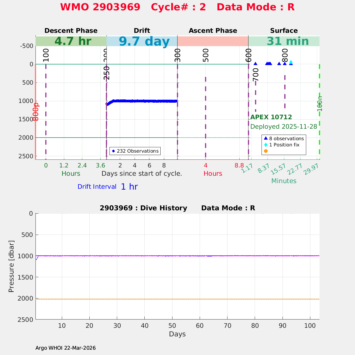 | WMO: #2903970 DAC: aoml PI: STEPHEN RISER/KEN JOHNSON APEX: #10714 SBE41CP: #20327 DRUCK_2900PSIA: #12591341 AANDERAA_OPTODE_4330: #4363 ISUS: #1163 DURA: #1163 ECO_FLBBFL_AP2: #8986 Altimeter Comparison (IFREMER) EuroArgo Link | n/a | n/a | ![]() |