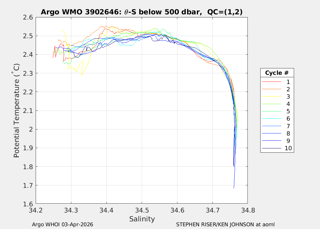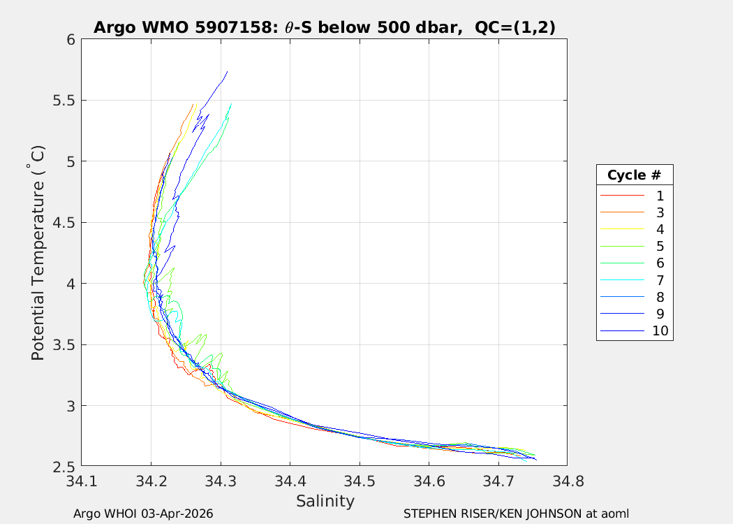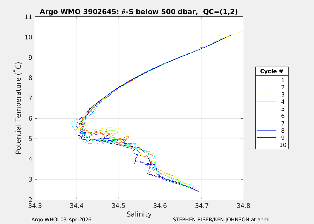 | WMO: #5907153 DAC: aoml PI: STEPHEN RISER/KEN JOHNSON APEX: #10715 SBE41CP: #20216 DRUCK_2900PSIA: #12441649 AANDERAA_OPTODE_4330: #4362 ISUS: #3001 DURA: #3001 ECO_FLBB_AP2: #8945 OCR504_ICSW: #2509 Altimeter Comparison (IFREMER) EuroArgo Link | ![]() |