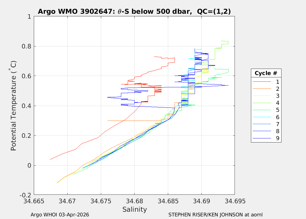 | WMO: #7902076 DAC: aoml PI: STEPHEN RISER APEX: #10822 SBE41CP: #20288 DRUCK_2900PSIA: #12512841 Altimeter Comparison (IFREMER) EuroArgo Link | ![]() |