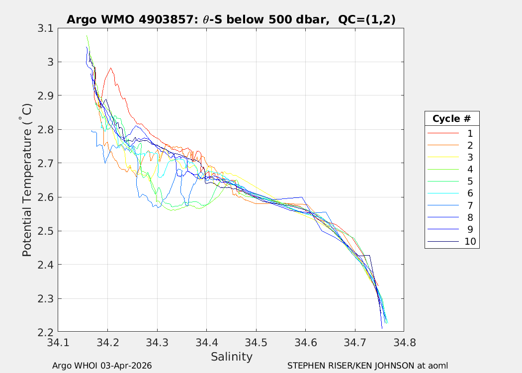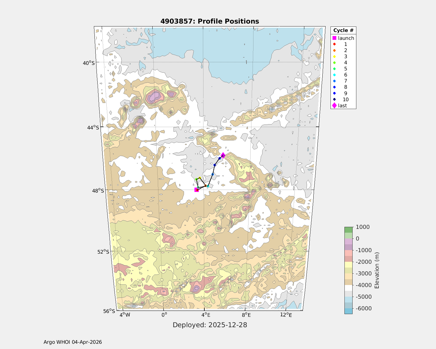 | WMO: #4903857 DAC: aoml PI: STEPHEN RISER/KEN JOHNSON APEX: #10296 SBE41CP: #18923 DRUCK_2900PSIA: #12263190 AANDERAA_OPTODE_4330: #4035 ISUS: #1112 DURA: #1112 ECO_FLBBFL_AP2: #7989 Altimeter Comparison (IFREMER) EuroArgo Link | ![]() |