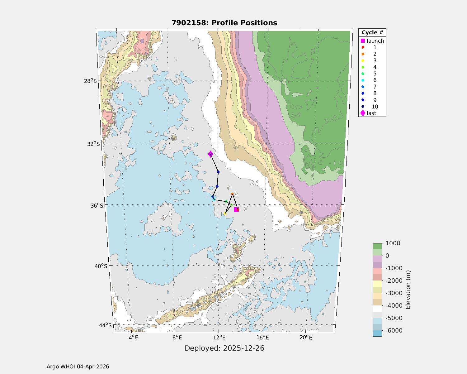 | WMO: #7902158 DAC: aoml PI: STEPHEN RISER/KEN JOHNSON APEX: #10307 SBE41CP: #18924 DRUCK_2900PSIA: #12263191 AANDERAA_OPTODE_4330: #4036 ISUS: #1120 DURA: #1120 ECO_FLBBFL_AP2: #7712 Altimeter Comparison (IFREMER) EuroArgo Link | n/a | n/a | ![]() |