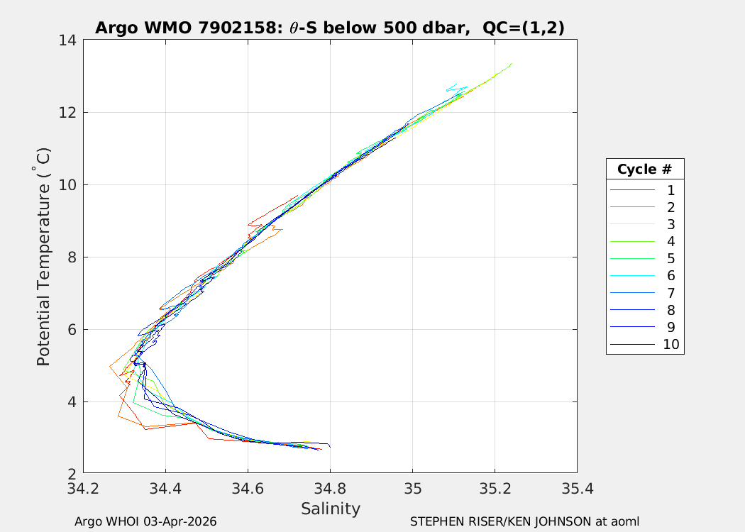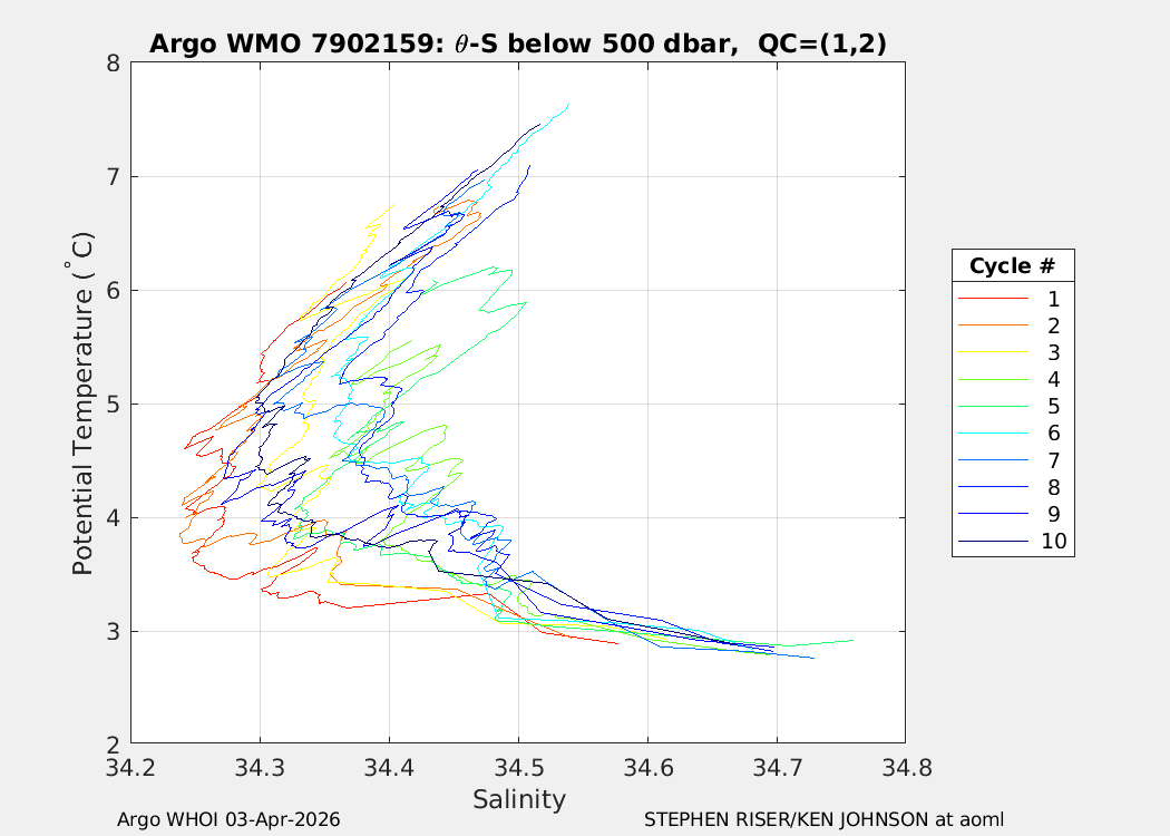 | WMO: #7902149 DAC: aoml PI: STEPHEN RISER/KEN JOHNSON APEX: #10720 SBE41CP: #20210 DRUCK_2900PSIA: #12441646 AANDERAA_OPTODE_4330: #4412 ISUS: #1134 DURA: #1134 ECO_FLBB_AP2: #9010 OCR504_ICSW: #2535 Altimeter Comparison (IFREMER) EuroArgo Link | ![]() |