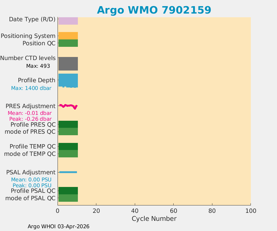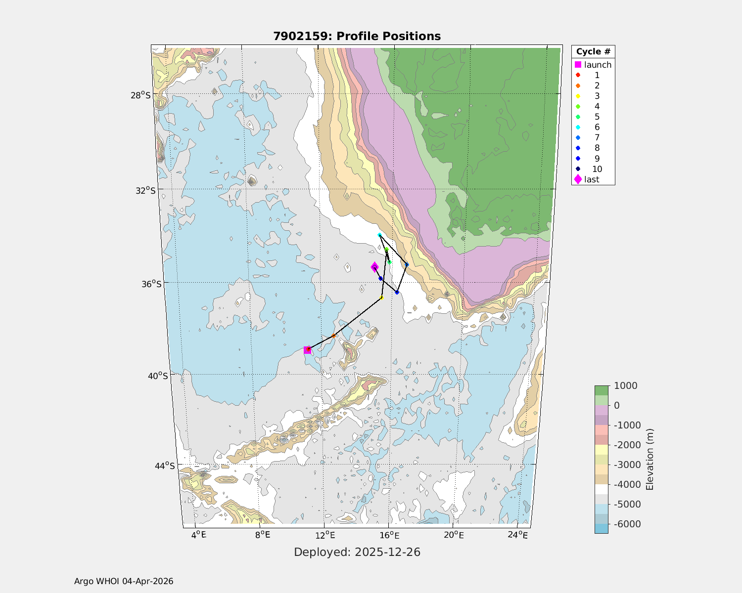 | WMO: #7902159 DAC: aoml PI: STEPHEN RISER/KEN JOHNSON APEX: #10310 SBE41CP: #18928 DRUCK_2900PSIA: #12182549 AANDERAA_OPTODE_4330: #4041 ISUS: #1130 DURA: #1130 ECO_FLBBFL_AP2: #7716 Altimeter Comparison (IFREMER) EuroArgo Link | n/a | n/a | ![]() |